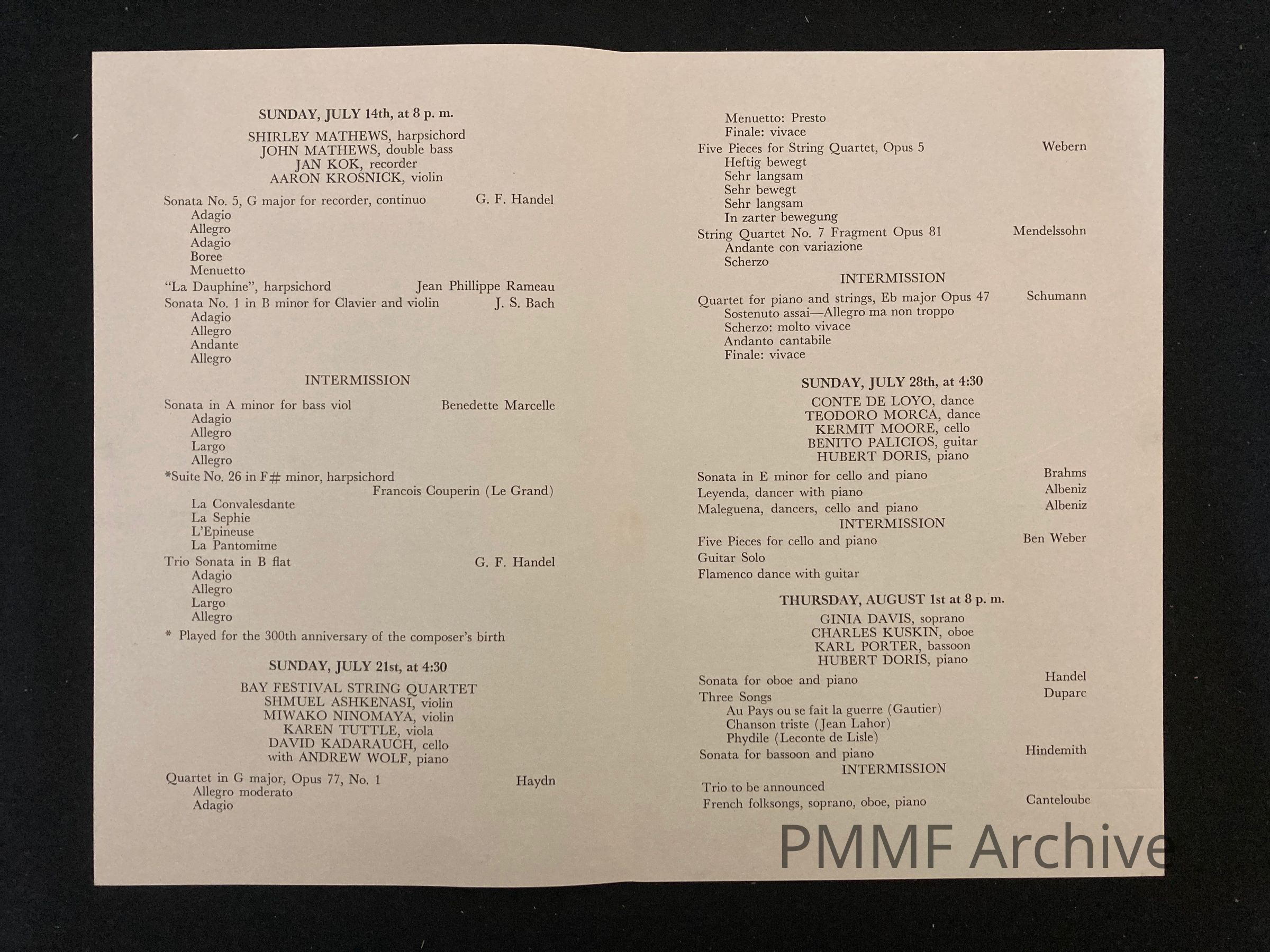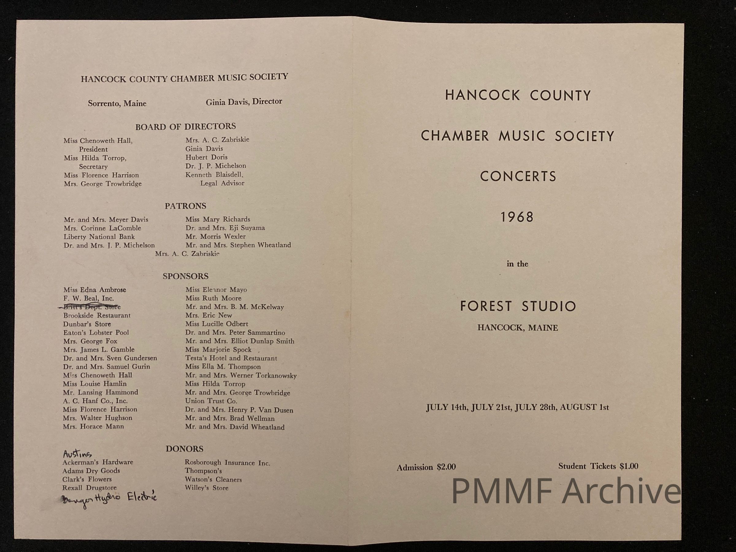 Hancock County Chamber Music Society Concerts 1968 in the Forest Studio Hancock, MaineCreated By