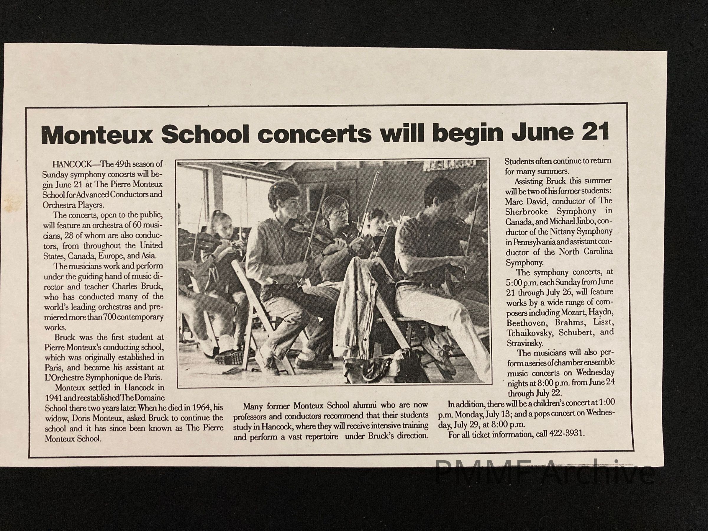 Newspaper announcement of 49th Season of Monteux Concerts 1992