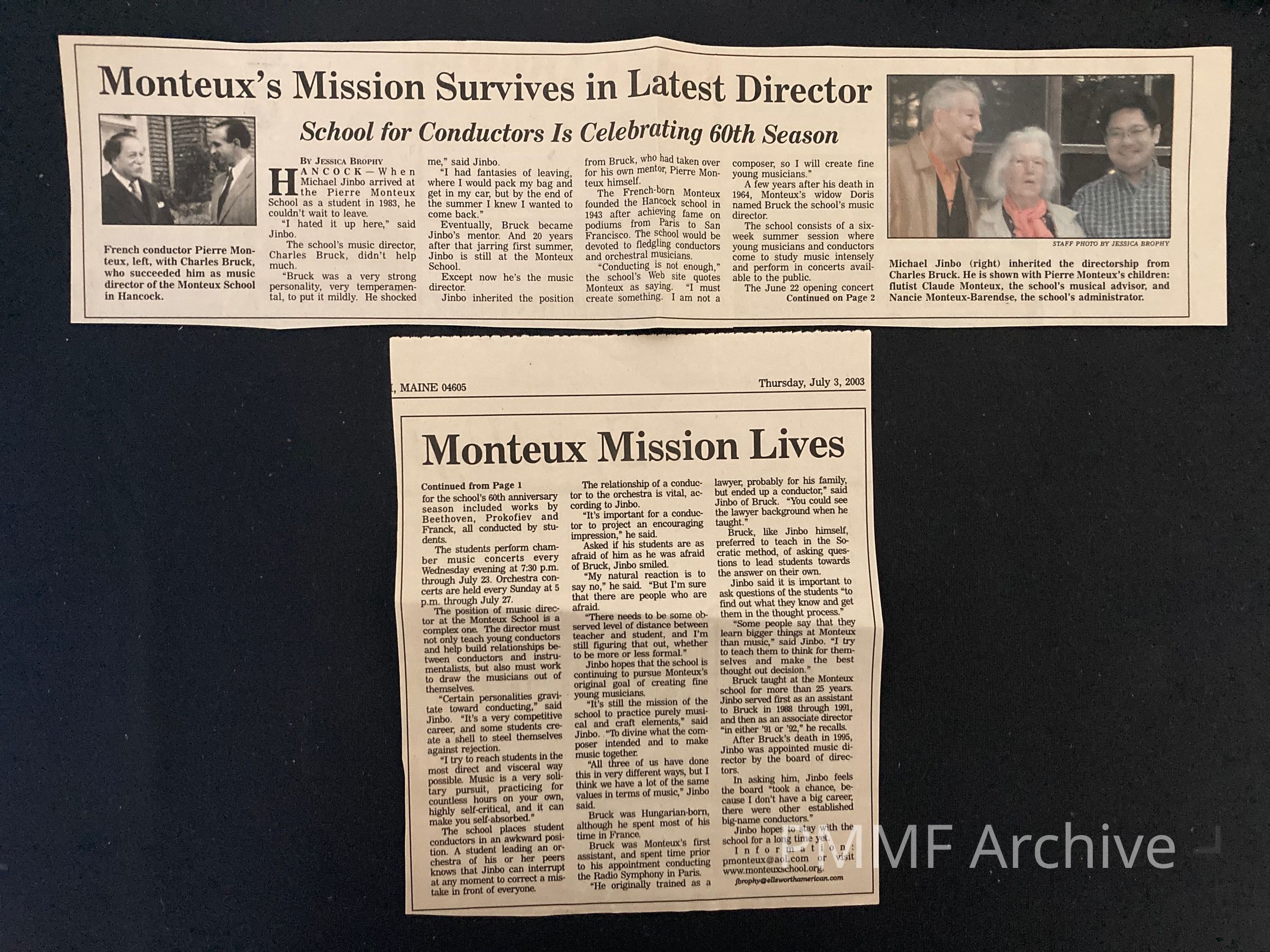 Ellsworth American article July 3, 2003; photo of Claude Monteux, Nancie Barendse and Michael JinboCreated By