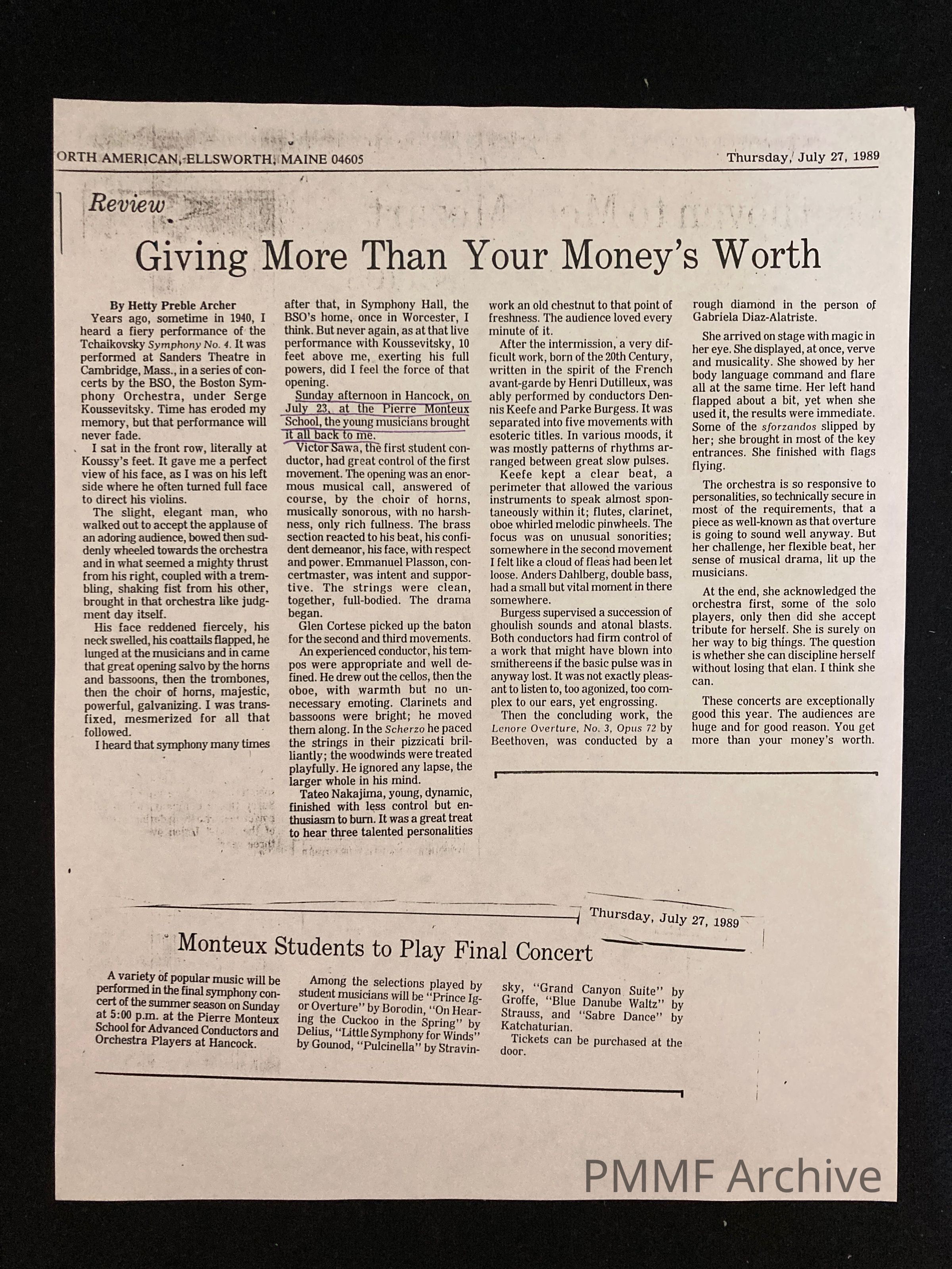 Review by Hetty Preble Archer of July 23, 1989 concert