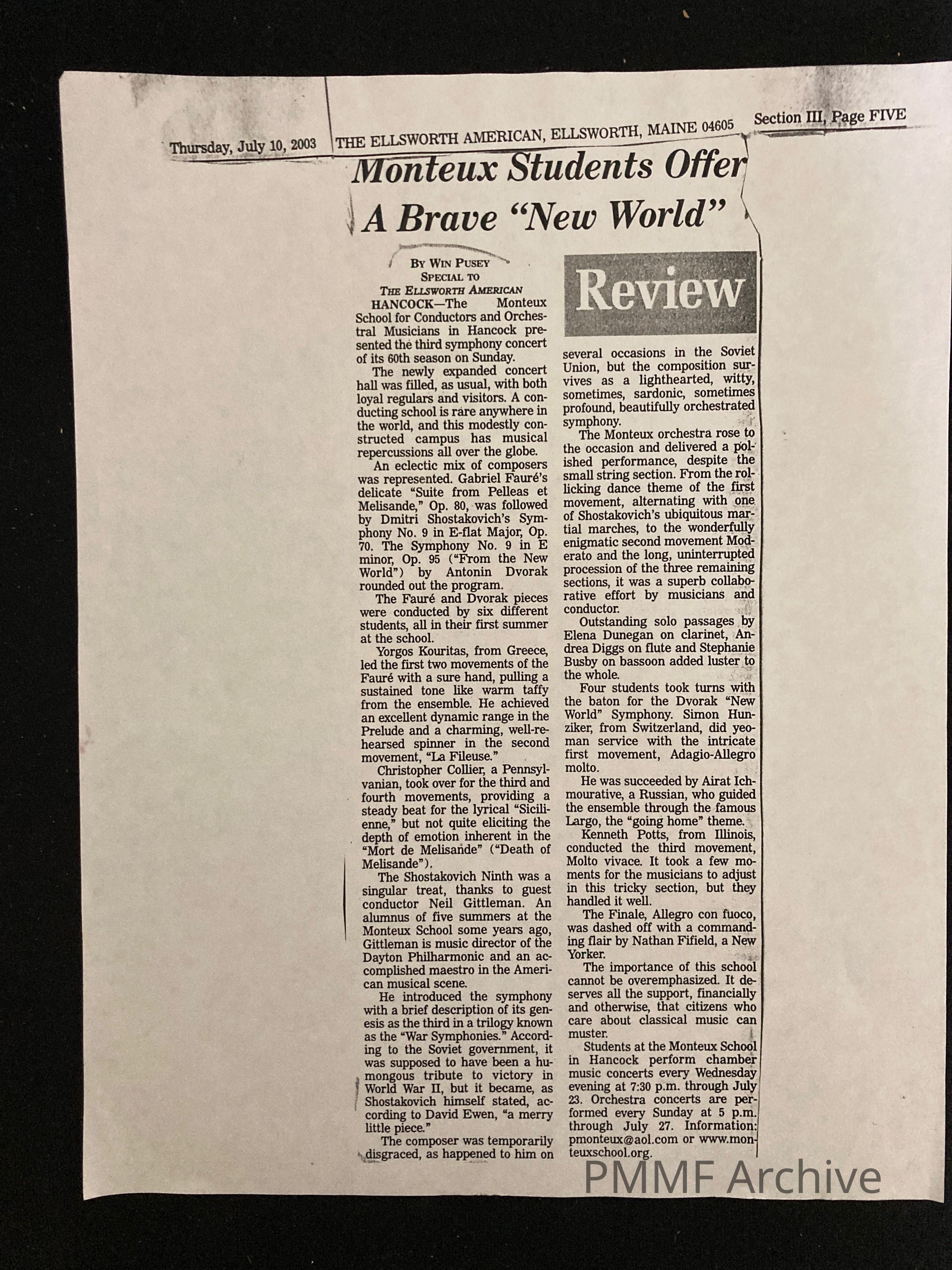 Win Pusey review of July 10, 2003 in "newly expanded concert hall"