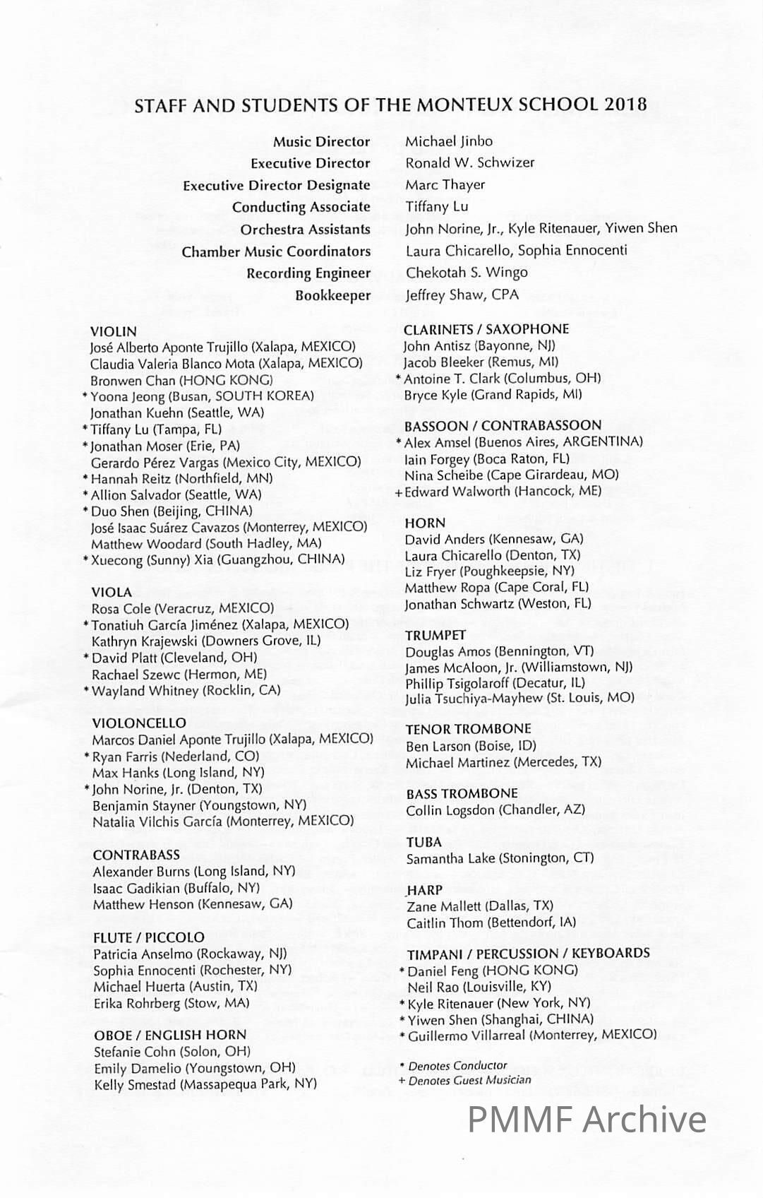 2018 Students, Concert Programs, Student Biographies & Curriculum