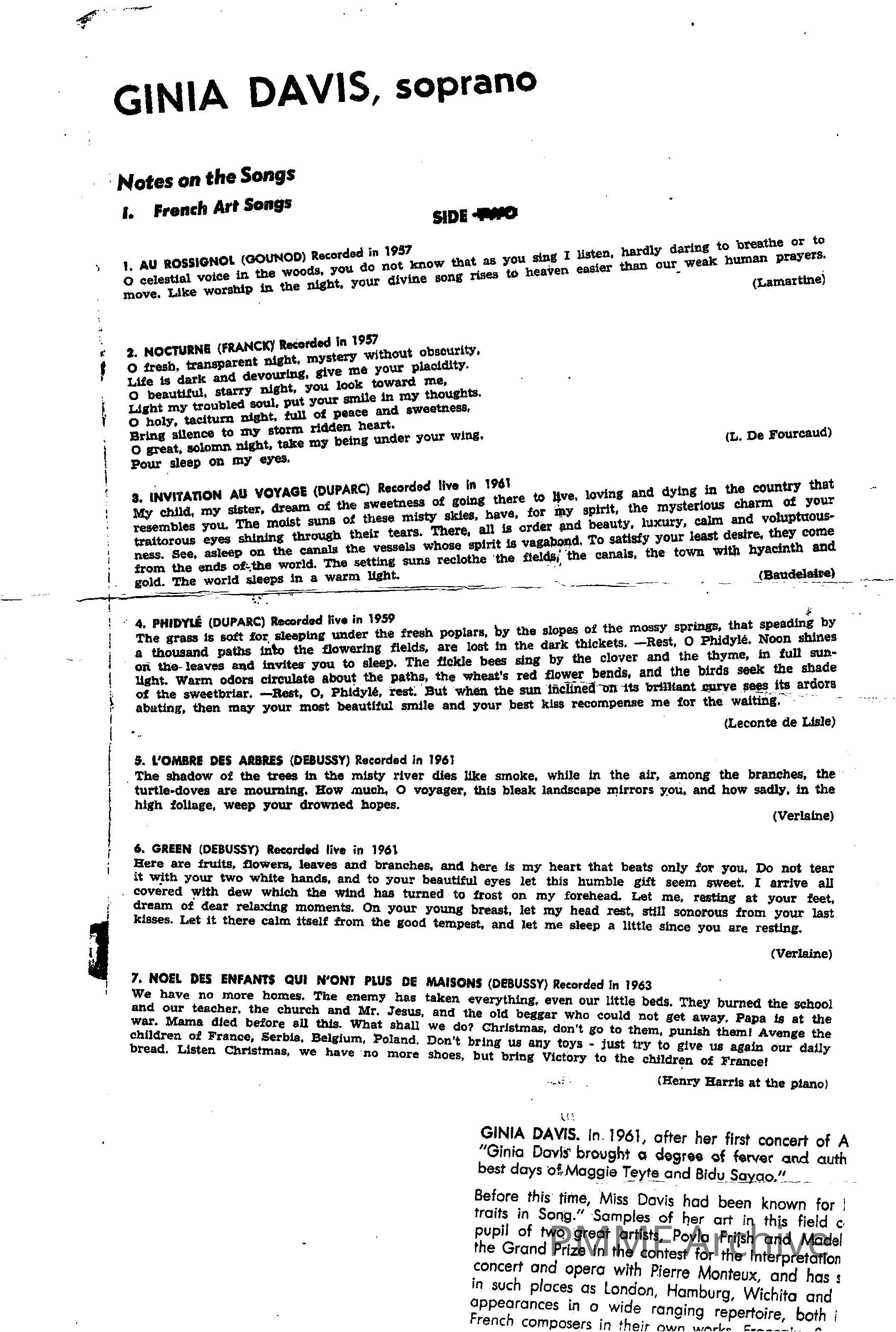 Art Songs Ginia Davis SopranoEntry/Object ID