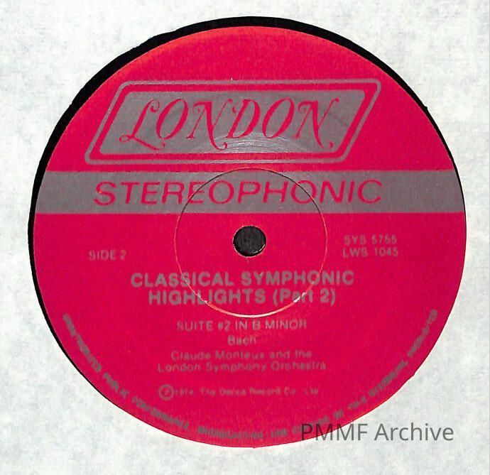 BACH: SUITE NO. 2 IN B MINOR; IN BOX "CLASSICAL SYMPHONIC HIGHLIGHTS, PART 2; DISC 3 OF 3, SIDE 2Collection