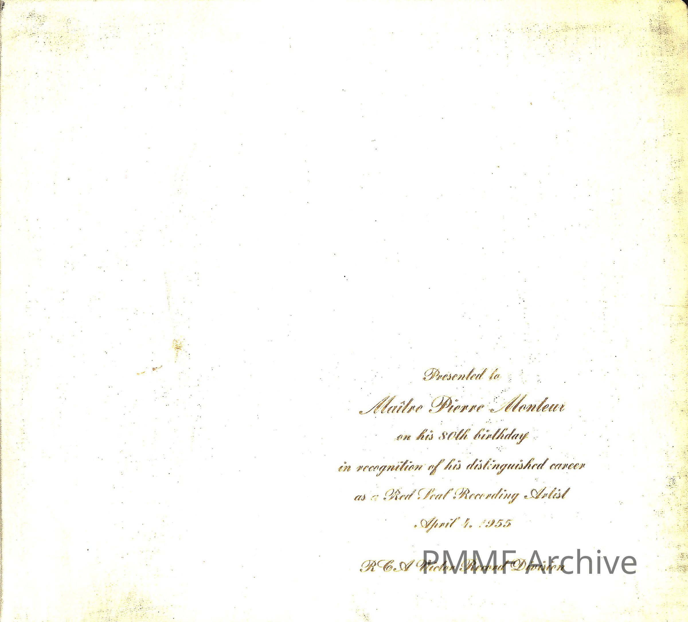PIERRE MONTEUX'S 80TH BIRTHDAYCataloged By