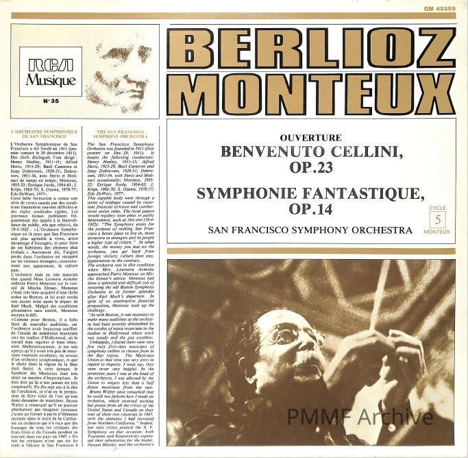 Monteux, Pierre, San Francisco Symphony Orchestra, RCA MUSIQUE GM 43359Archive Notes