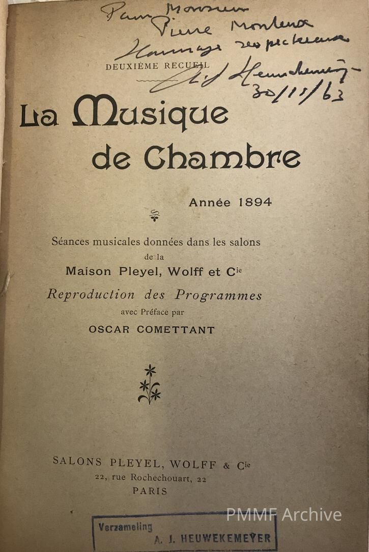 Inscribed as gift to Pierre Monteux 30/11/63 by A. J. HeuwekemeyerCollection
