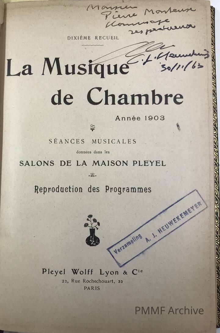 Inscribed as gift to Pierre Monteux 30/11/63 by by A. J. HeuwekemeyerCollection