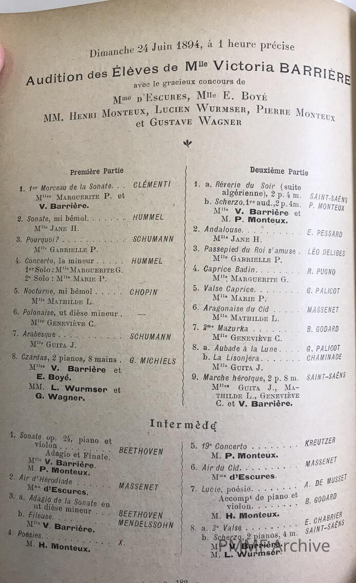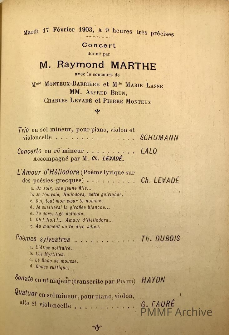 Selected concert performances with Pierre Monteux & Mme. Monteux-Barriere; also Henri Monteux