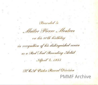 PIERRE MONTEUX'S 80TH BIRTHDAYCataloged By