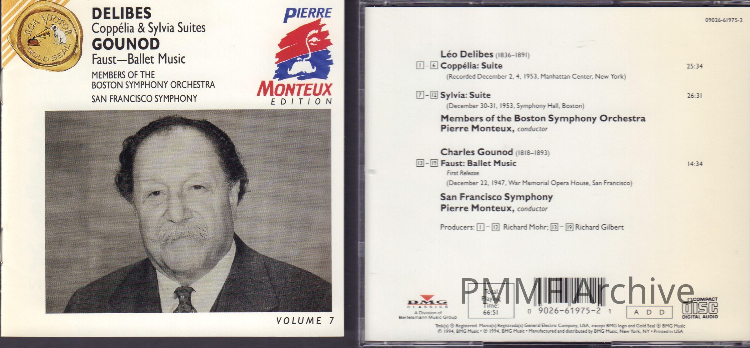 VOLUME 7 OF "PIERRE MONTEUX EDITION." DELIBES: COPPÉLIA & SYLVIA SUITES; MEMBERS OF THE BOSTON SYMPHONY ORCHESTRA. GOUNOD: FAUST-BALLET MUSIC, SAN FRANCISCO SYMPHONY.Entry/Object ID