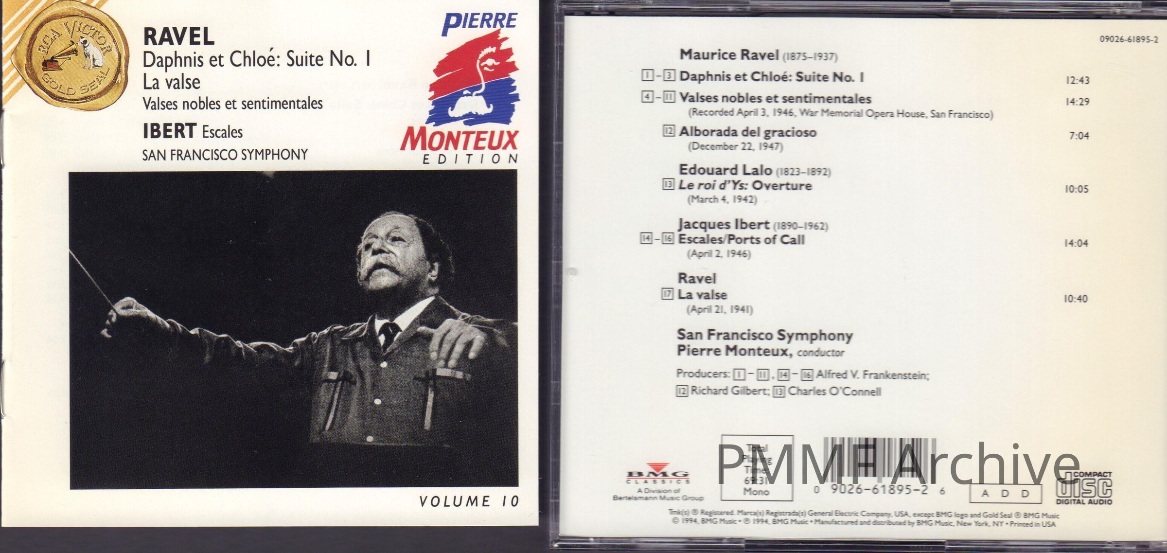 VOLUME 10 OF "PIERRE MONTEUX EDITION." RAVEL: DAPHNIS ET CHLOË: SUITE NO. 1. RAVEL" LA VALSE. RAVEL: VALSES NOBLES ET SENTIMEMTALE. IBERT: ESCALES. SAN FRANCISCO SYMPHONY.Entry/Object ID
