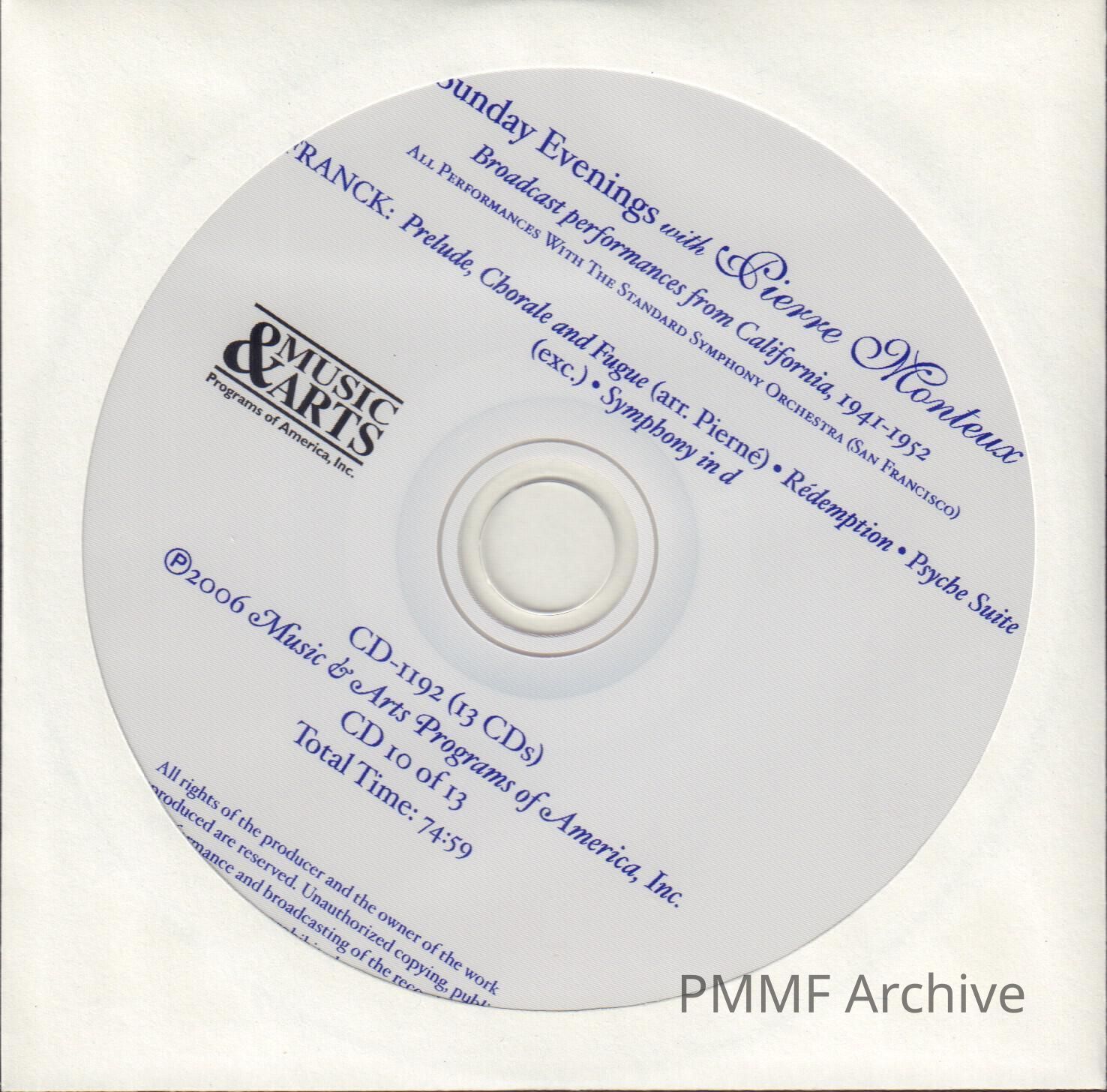 CD 10 OF 13 "SUNDAY EVENINGS WITH PIERRE MONTEUX: BROADCAST PERFORMANCES, 1941-1952" WITH THE STANDARD SYMPHONY ORCHESTRA, SAN FRANCISCO. FRANCKEntry/Object ID