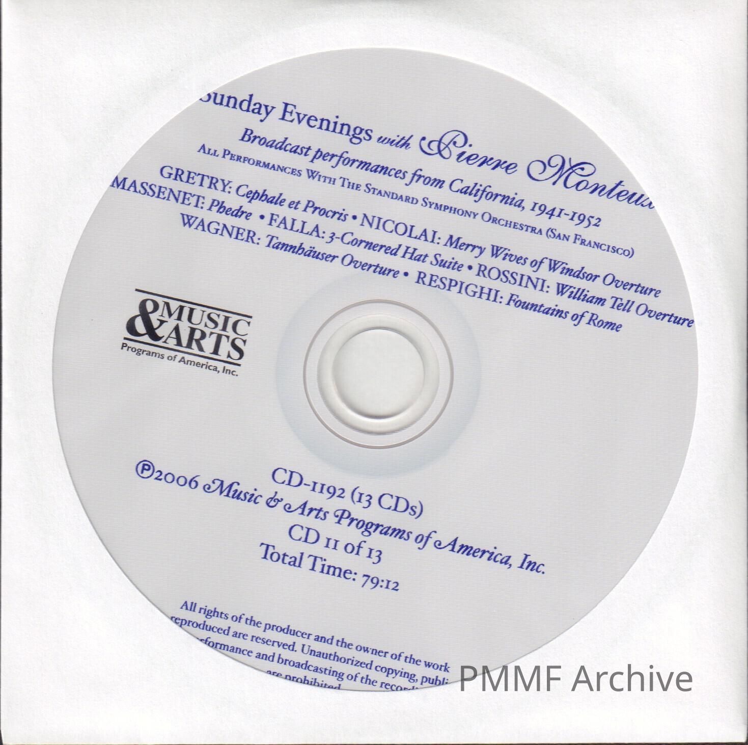 CD 11 OF 13 "SUNDAY EVENINGS WITH PIERRE MONTEUX: BROADCAST PERFORMANCES, 1941-1952" WITH THE STANDARD SYMPHONY ORCHESTRA, SAN FRANCISCO. GRETRY, NICOLAI, MASSENET, FALLA, ROSSINI, WAGNER, RESPHIGIEntry/Object ID