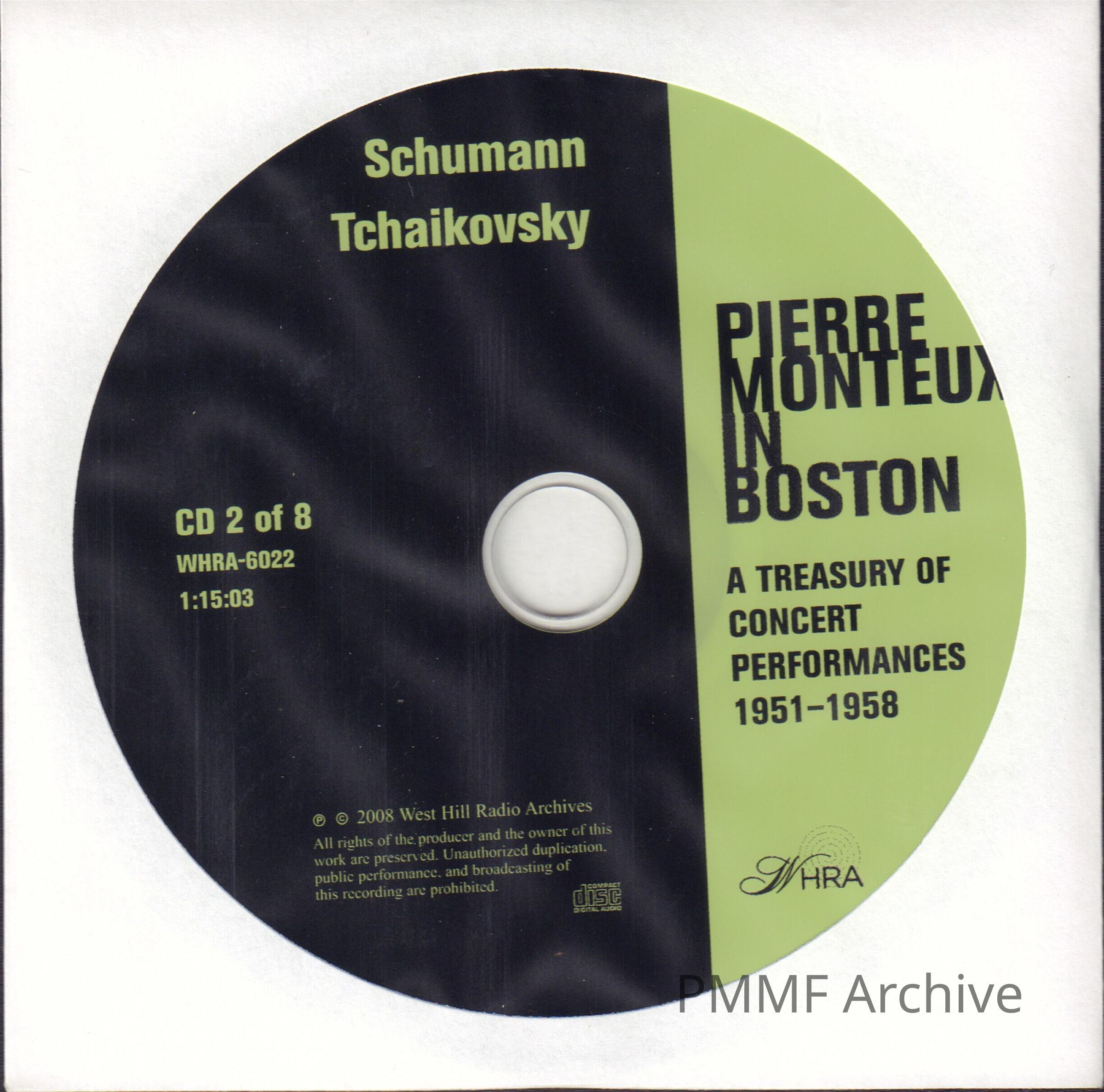 CD 2 OF 8 "PIERRE MONTEUX IN BOSTON: A TREASURY OF CONCERT PERFORMANCES 1951-1958." SCHUMANN-TCHAIKOWSKYEntry/Object ID