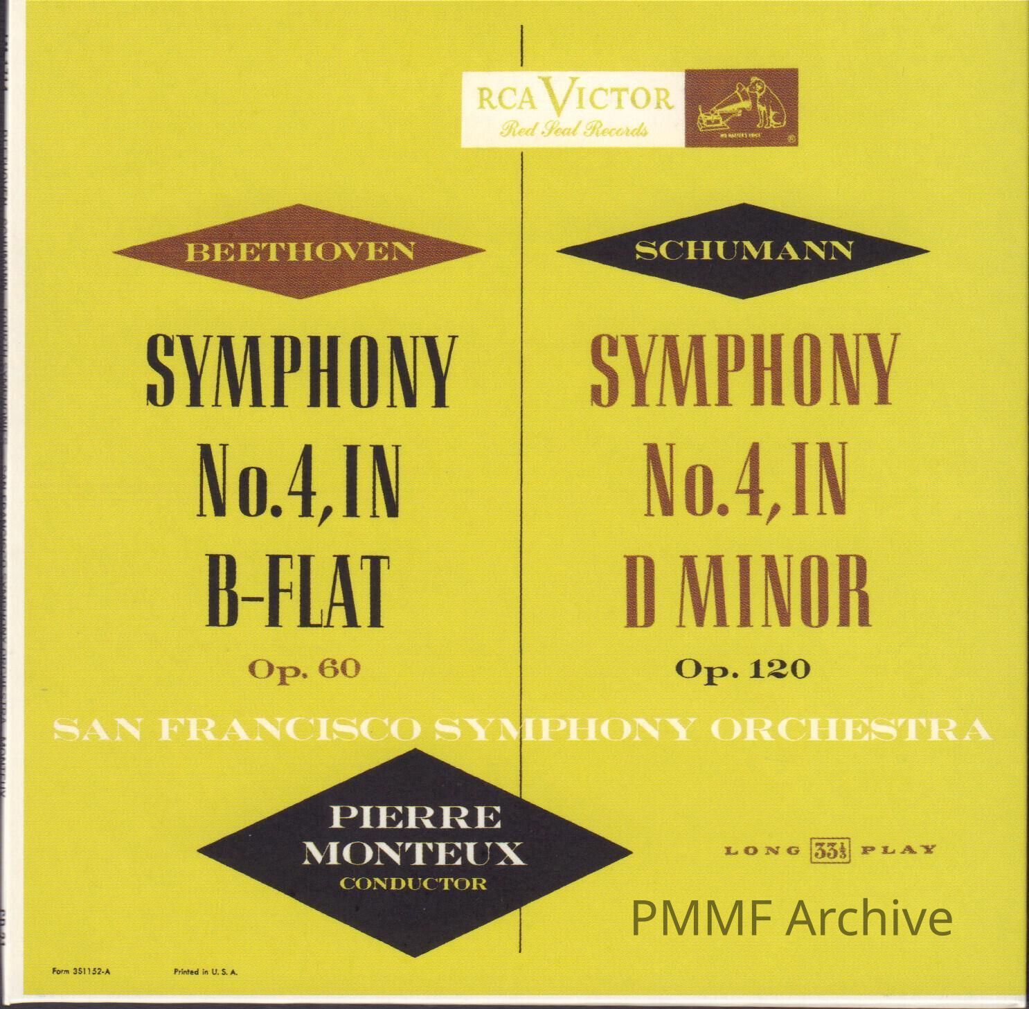 CD 21 OF "PIERRE MONTEUX: THE COMPLETE RCA ALBUM COLLECTION." BEETHOVEN: SYMPHONY NO. 4 IN B-FLAT, OP. 60 & SCHUMANN: SYMPHONY NO. 4 IN D MINOR, OP. 120; SAN FRANCISCO SYMPHONY ORCHESTRAEntry/Object ID