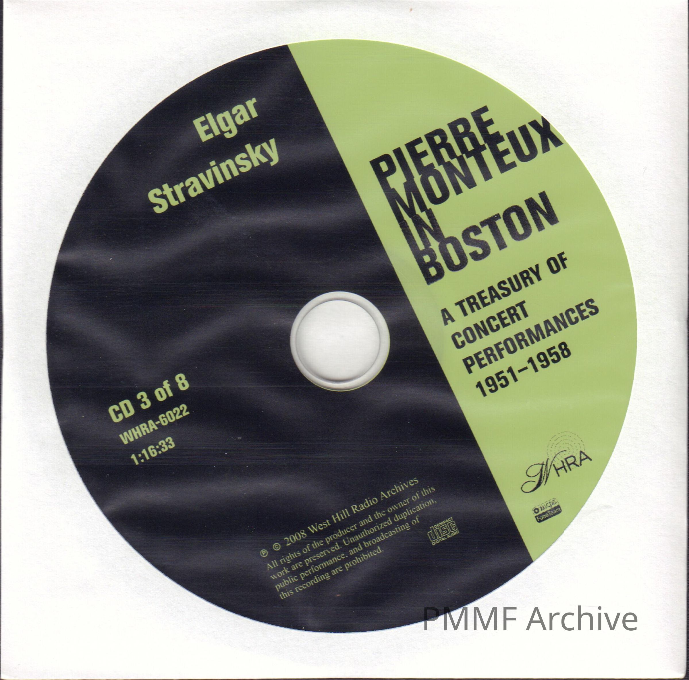 CD 3 OF 8 "PIERRE MONTEUX IN BOSTON: A TREASURY OF CONCERT PERFORMANCES 1951-1958." ELGAR-STRAVINSKYEntry/Object ID