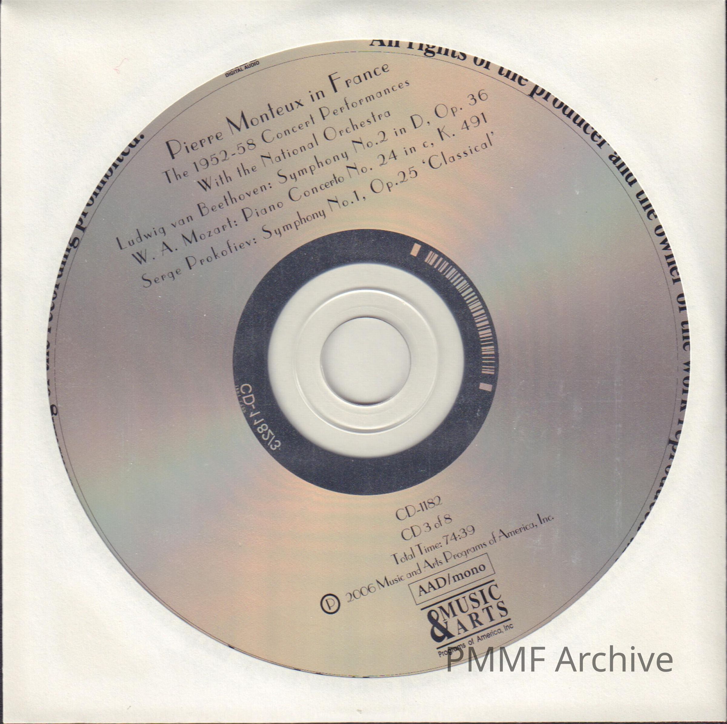 CD 3 OF 8 "PIERRE MONTEUX IN FRANCE: 1952-58 CONCERT PERFORMANCES ." ORCHESTRE NATIONAL DE FRANCE (AKA ORCHESTRE NATIONAL DE LA RTFEntry/Object ID