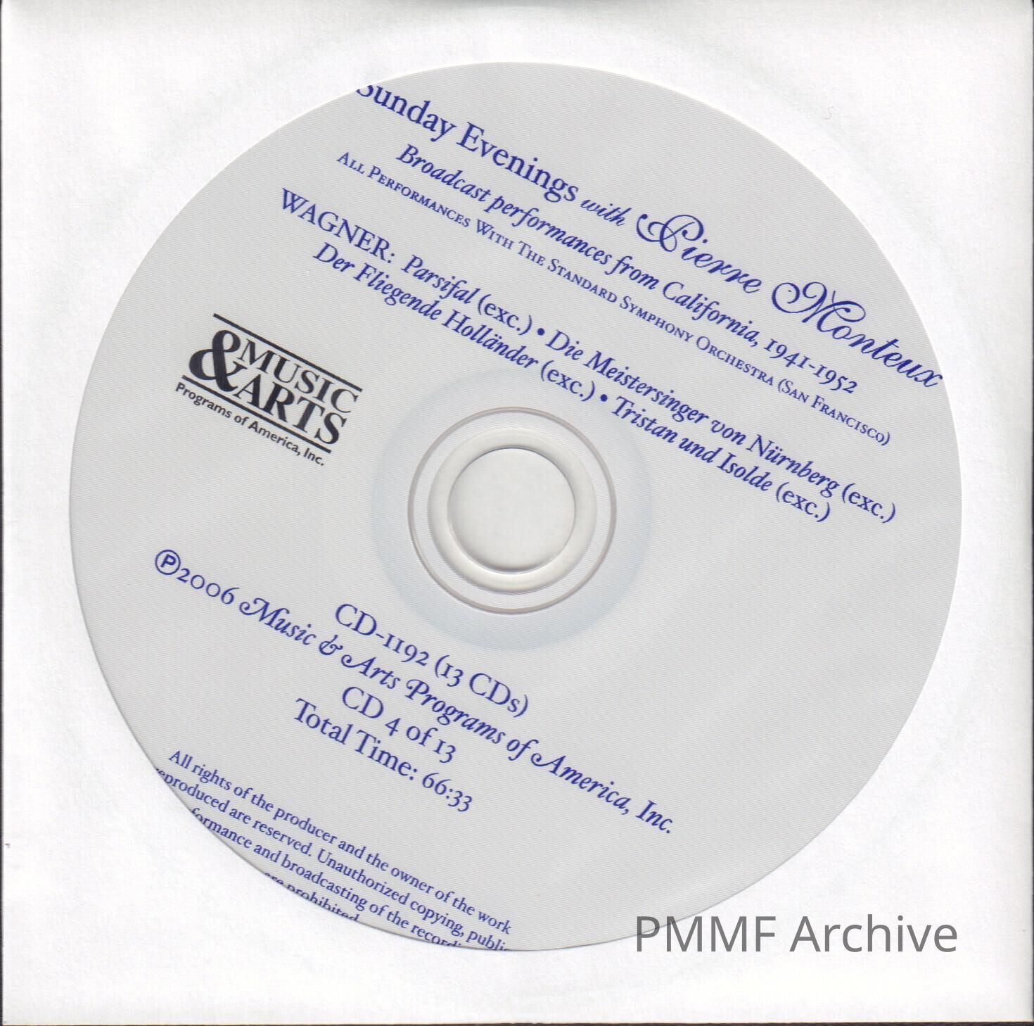 CD 4 OF 13 "SUNDAY EVENINGS WITH PIERRE MONTEUX: BROADCAST PERFORMANCES, 1941-1952" WITH THE STANDARD SYMPHONY ORCHESTRA, SAN FRANCISCO. WAGNEREntry/Object ID