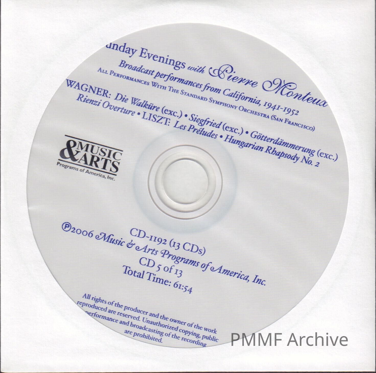 CD 5 OF 13 "SUNDAY EVENINGS WITH PIERRE MONTEUX: BROADCAST PERFORMANCES, 1941-1952" WITH THE STANDARD SYMPHONY ORCHESTRA, SAN FRANCISCO. WAGNER, LISZT.Entry/Object ID