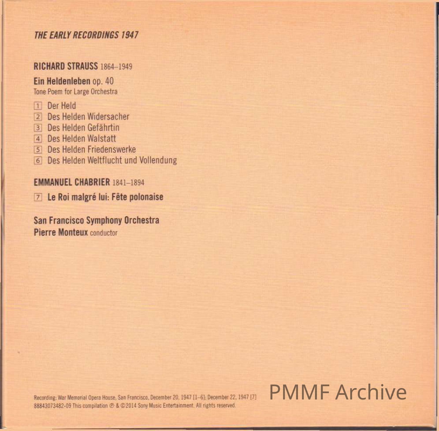 CD 9 OF "PIERRE MONTEUX: THE COMPLETE RCA ALBUM COLLECTION." THE EARLY RECORDINGS 1947. SAN FRANCISCO SYMPHONY ORCHESTRAEntry/Object ID