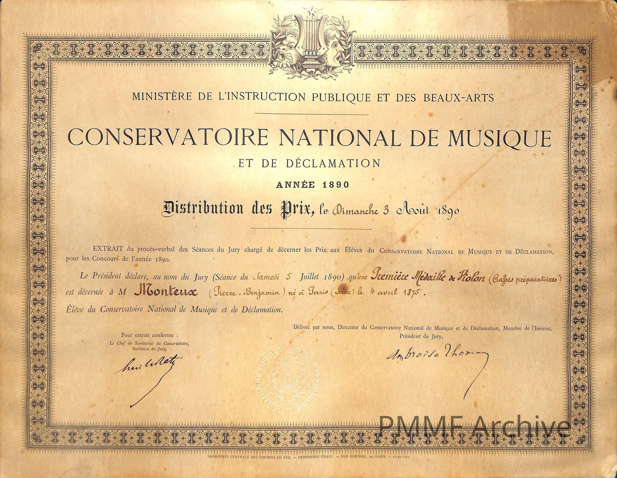 First Violin Medal, August 3,1890Artwork Details