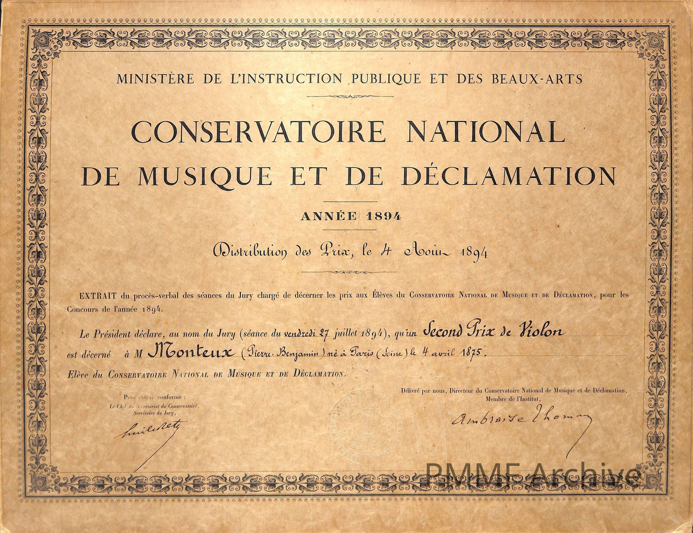 Certificate from the Ministry of Public Eduction & Fine Arts