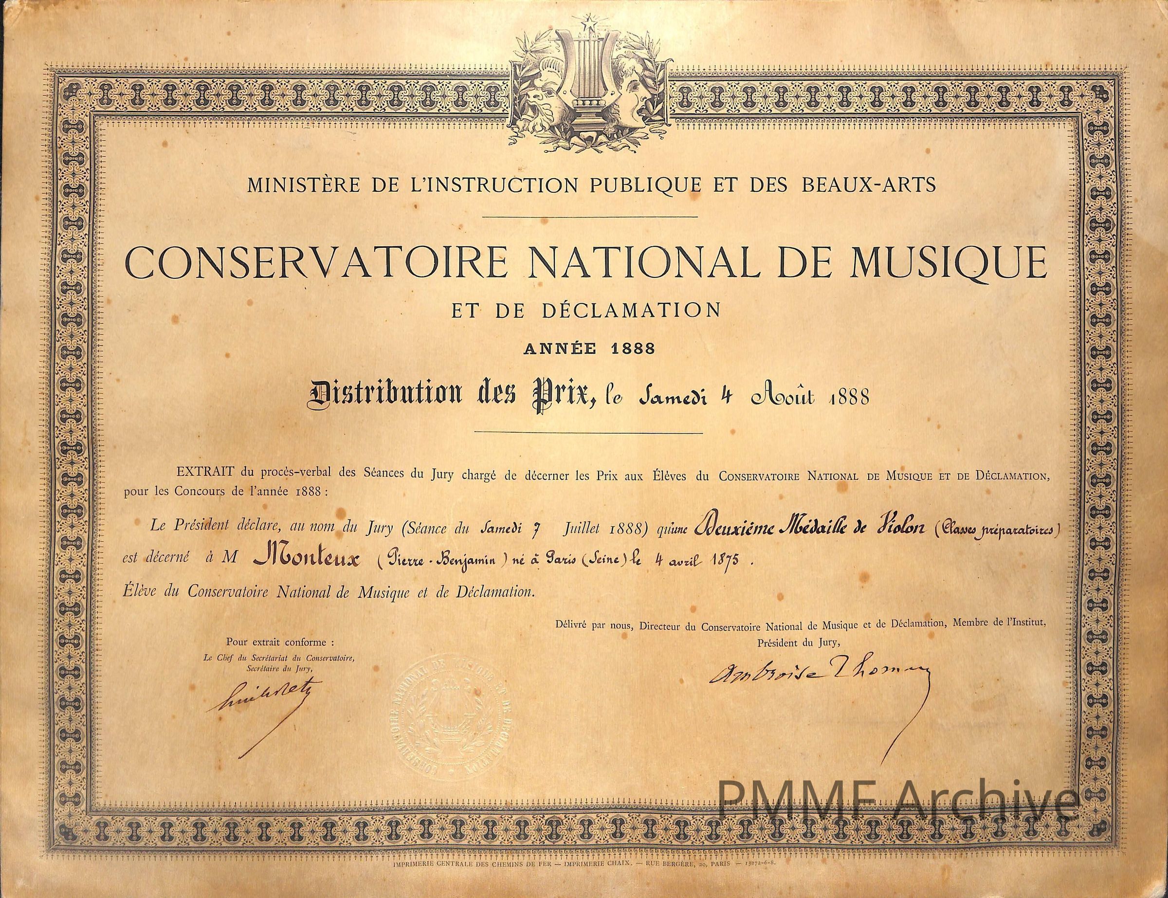 Certificate from the Ministry of Public Eduction & Fine Arts
