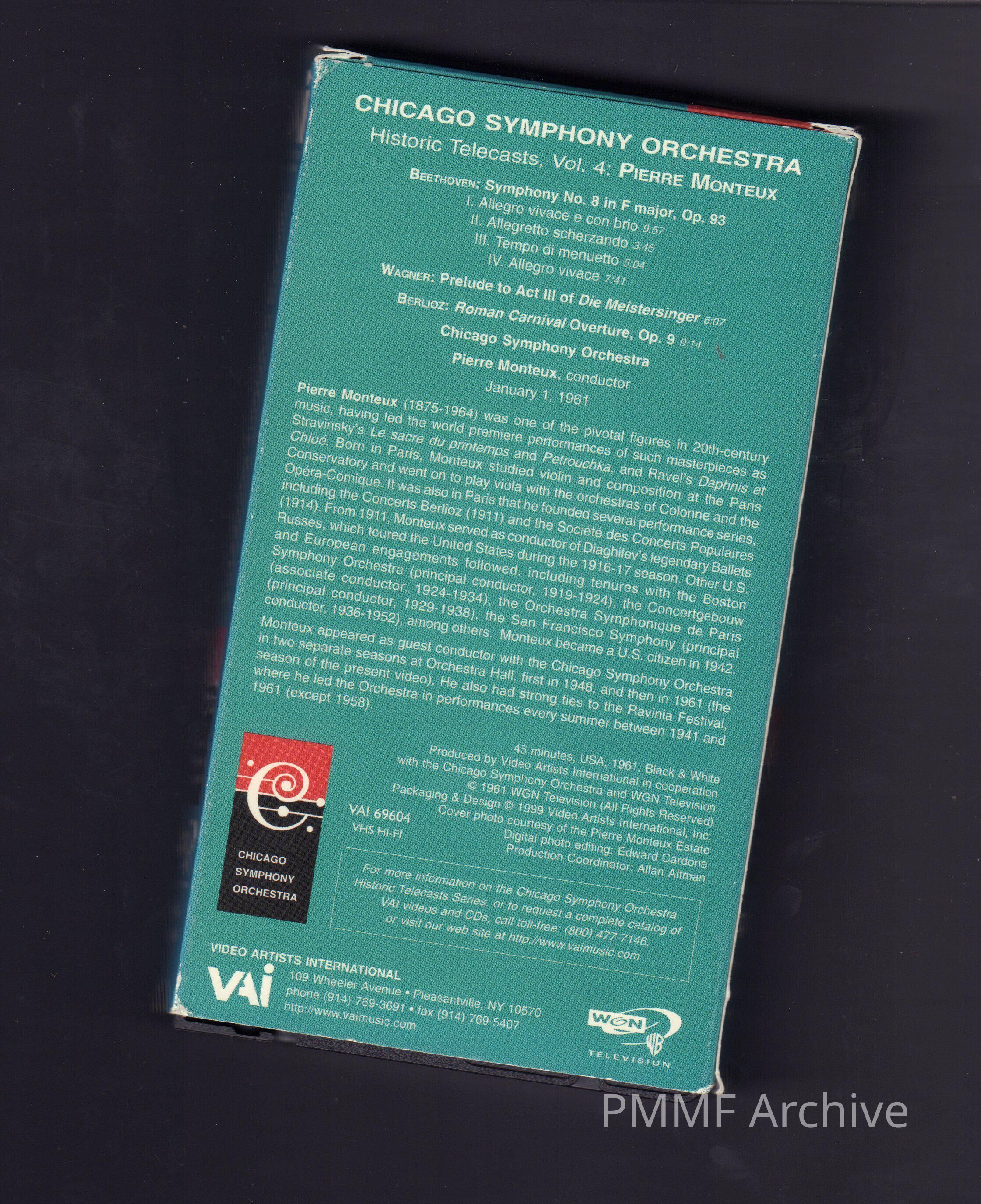 CHICAGO SYMPHONY ORCHESTRA Historic Telecasts Volume Four Pierre MonteuxEntry/Object ID