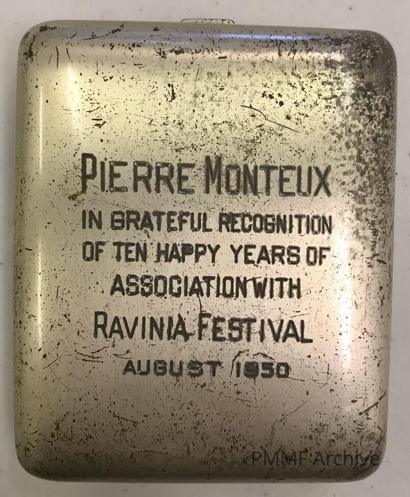 In metal case inscribed: "PIERRE MONTEUX IN GRATEFUL RECOGNITION OF TEN HAPPY YEARS OF ASSOCIATION WITH RAVINIA FESTIVAL AUGUST 1950"