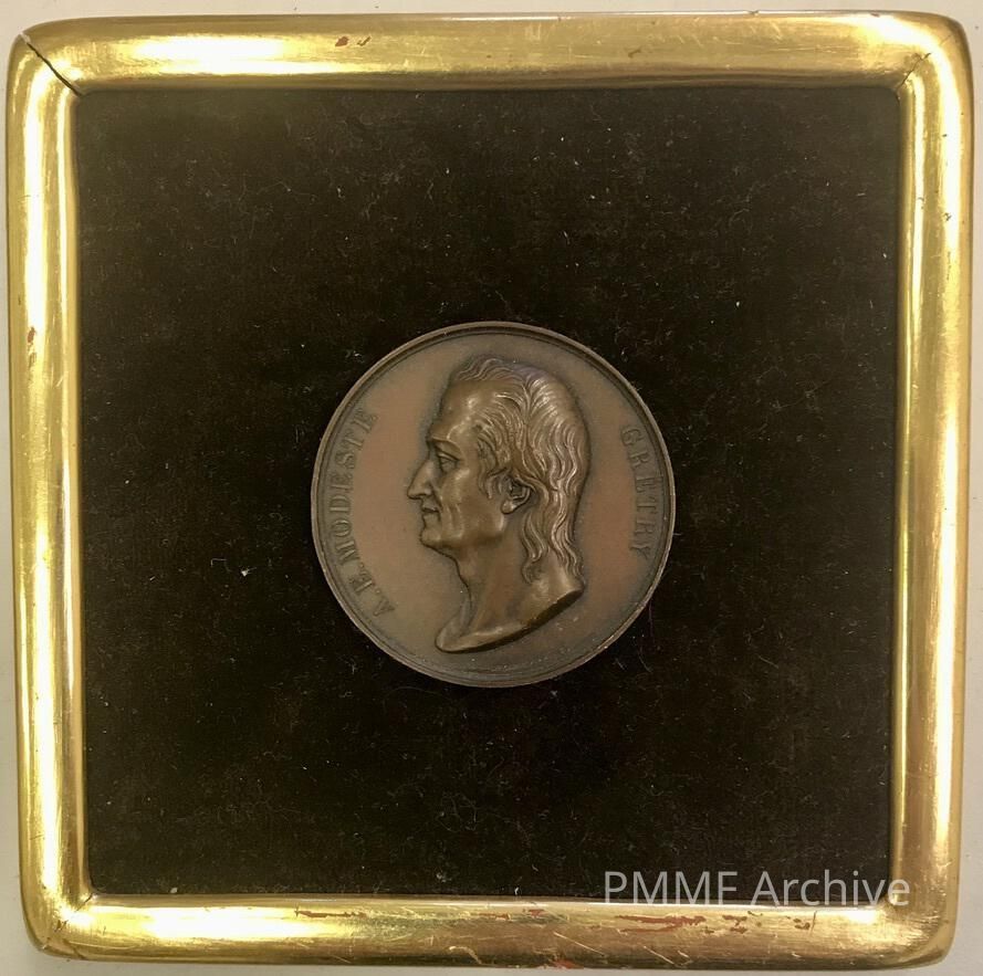 1842 France - André Ernest Modeste Grétry - French-Belgian from the Prince-Bishopric of Liège (present-day Belgium) by Constant Jehotte Obverse: A. E. MODESTE GRETRY -- Head facing left. // Reverse: LIEGE A GRETRY / 1842 -- Lire with sunburst of his works separated by lines, legend below Bronze]Collection