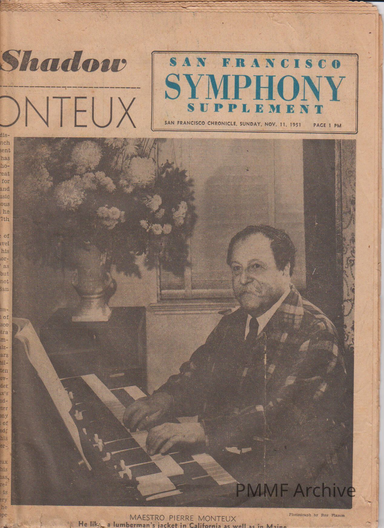 San Francisco Symphony Supplement to San Francisco Chronicle, November 11, 1951 with photo of Monteux at organ in Hancock Maine homeCollection