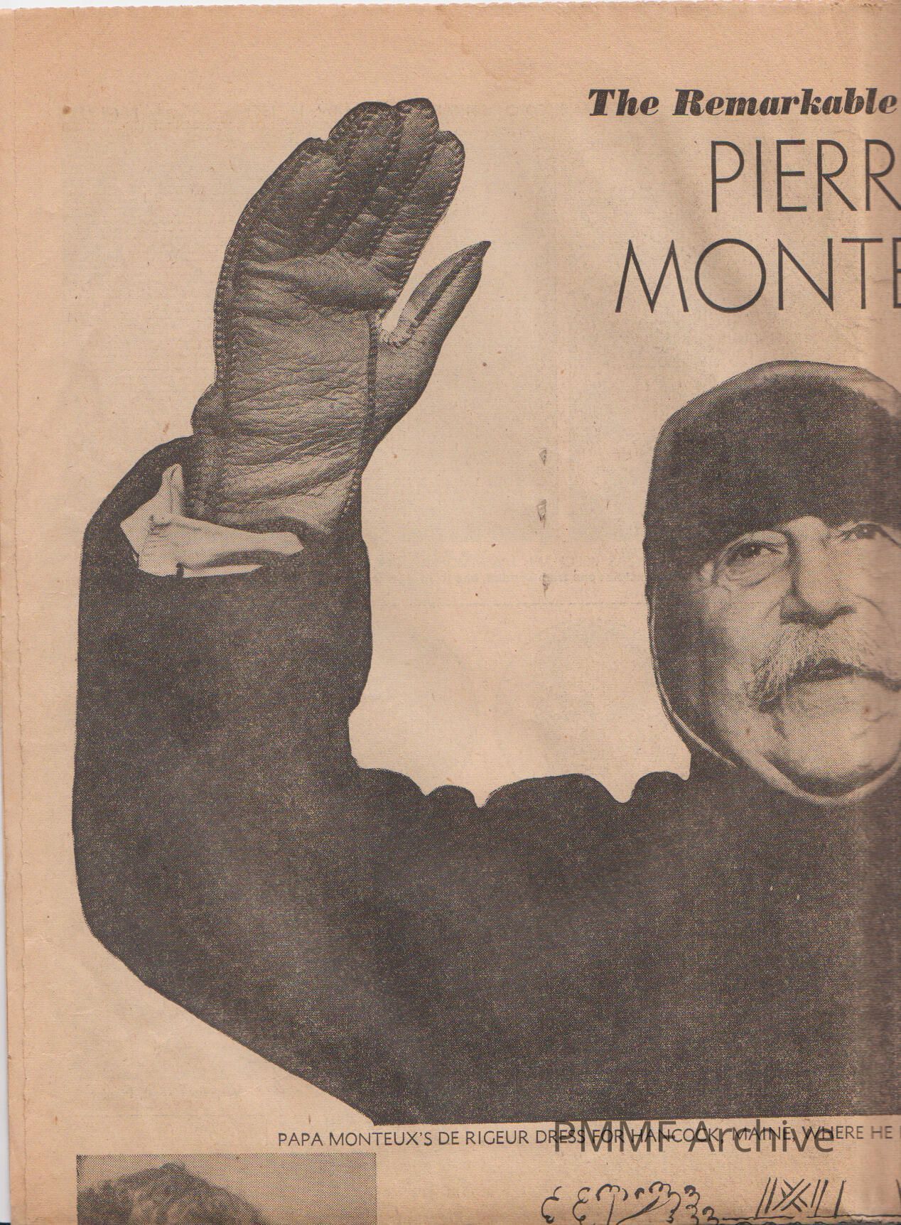 Newspaper feature article about Monteux in Hancock conducting program; photos from performances at San Francisco Opera HouseTags