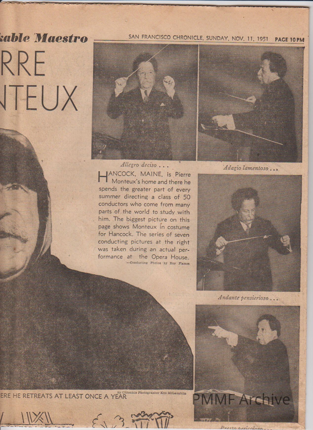San Francisco Chronicle Article about Monteux and Hancock, 1951Collection