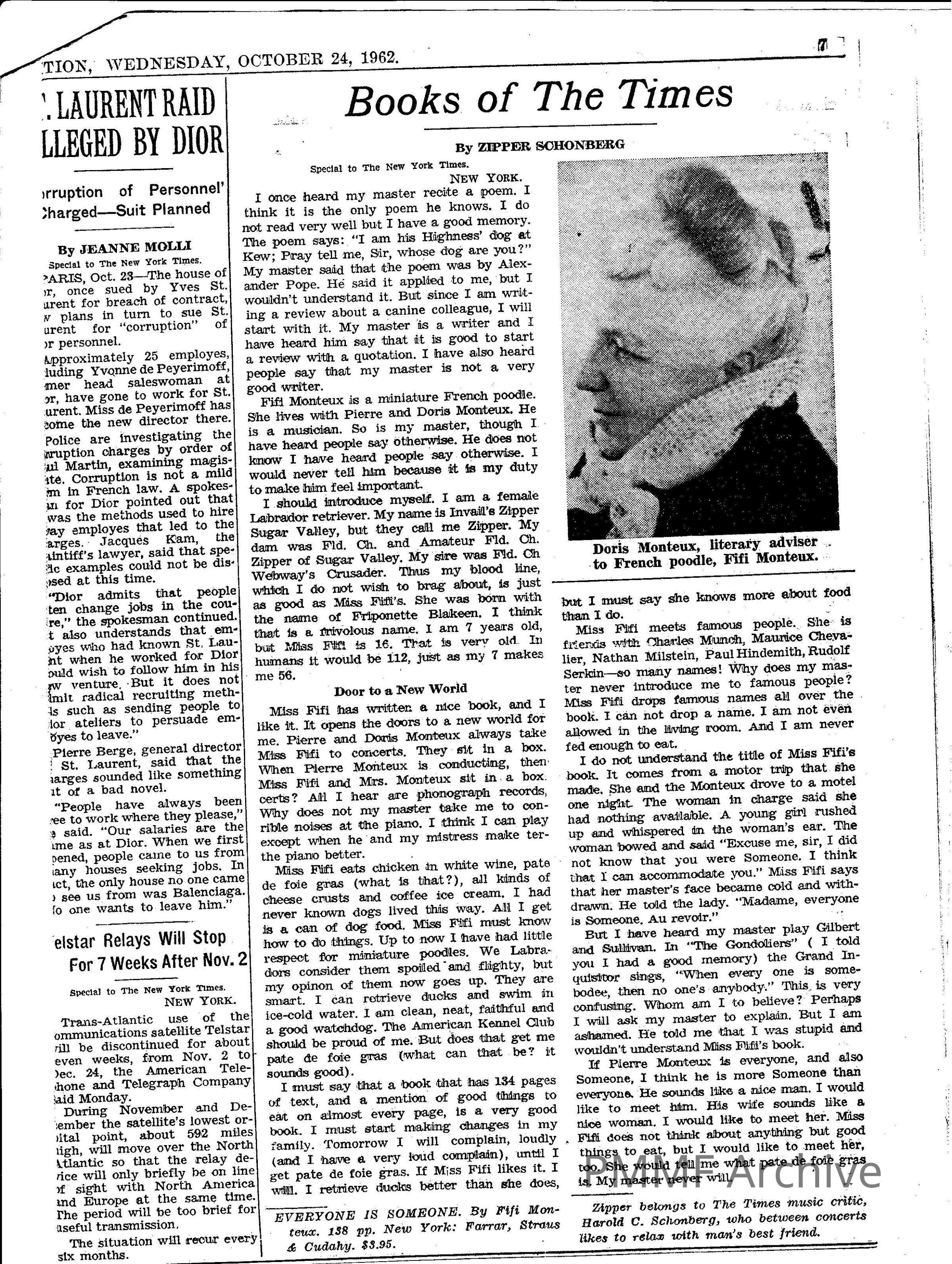 NY Times Review of book by "Fifi" (Doris Monteux), 1962Collection