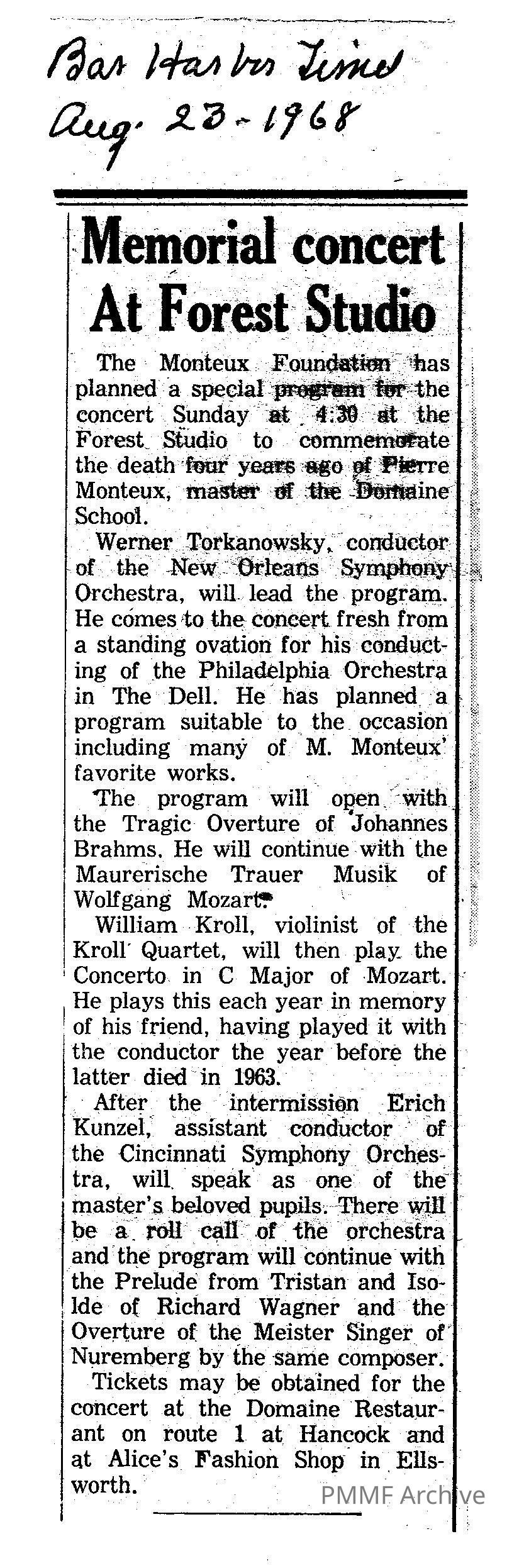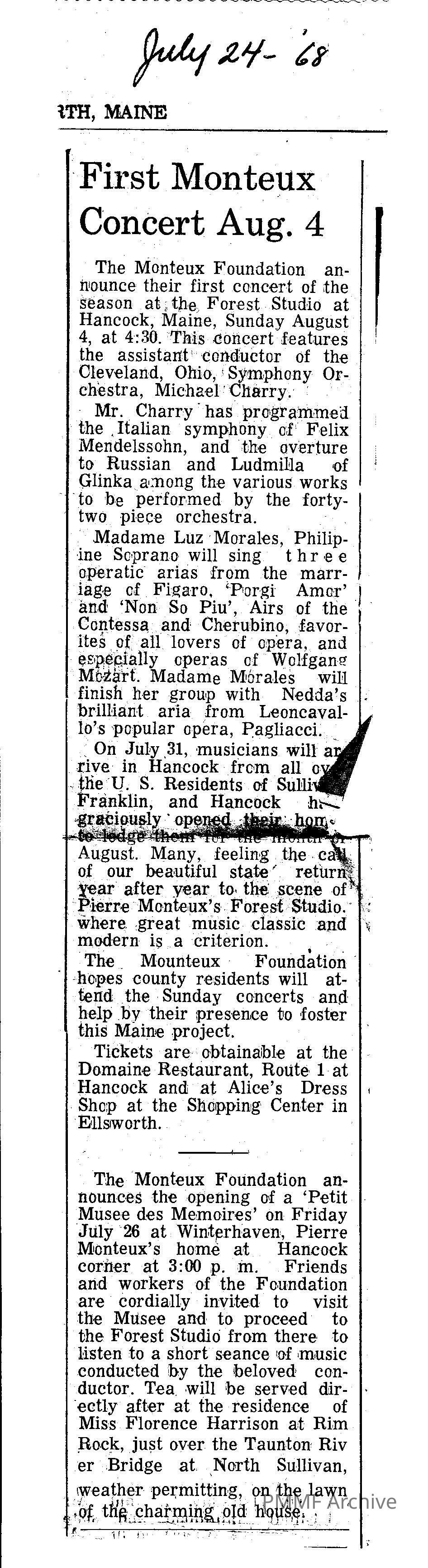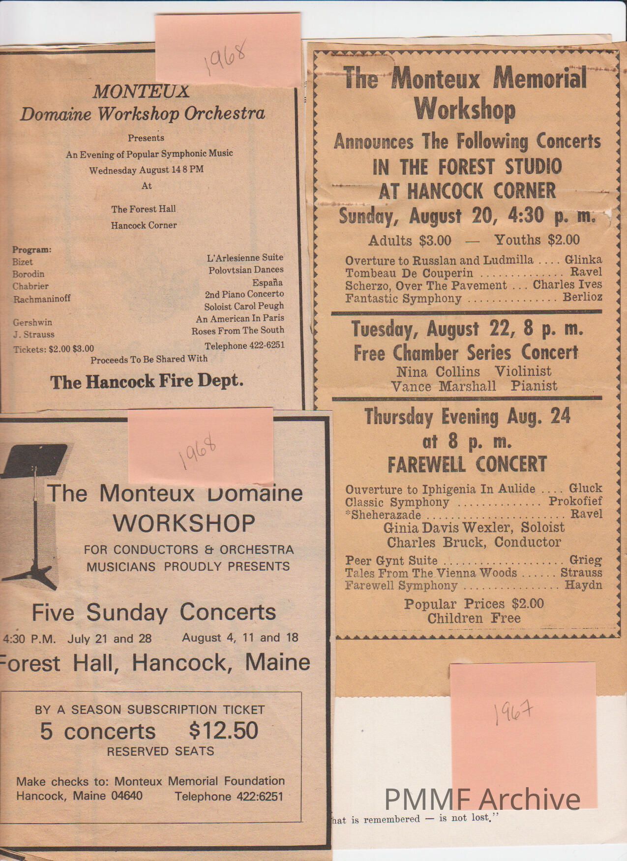 Monteux Domaine Workshop and program announcements and programs 1967–1968Tags