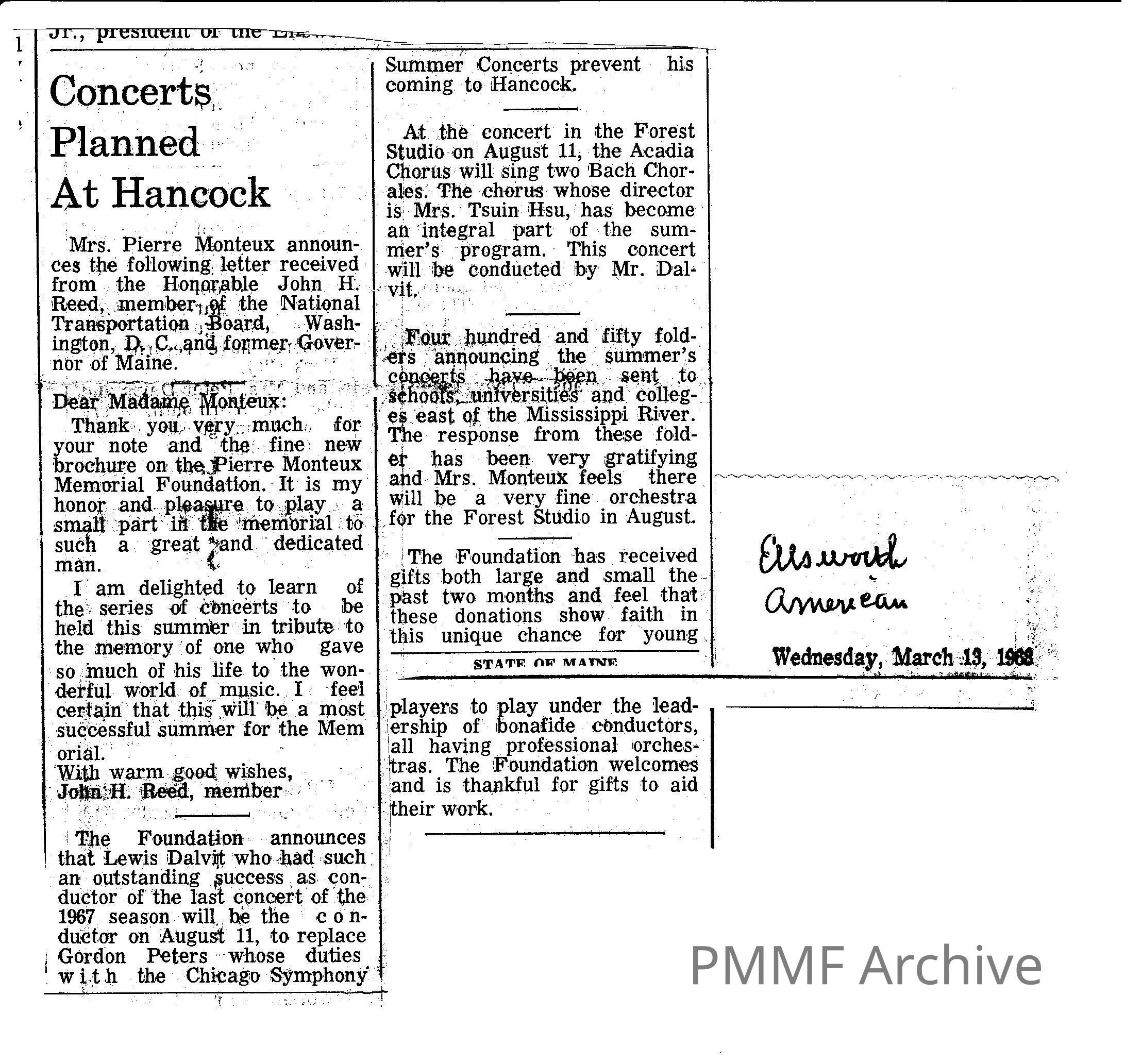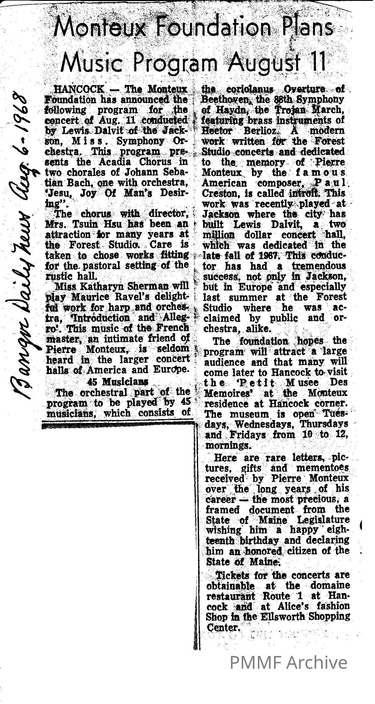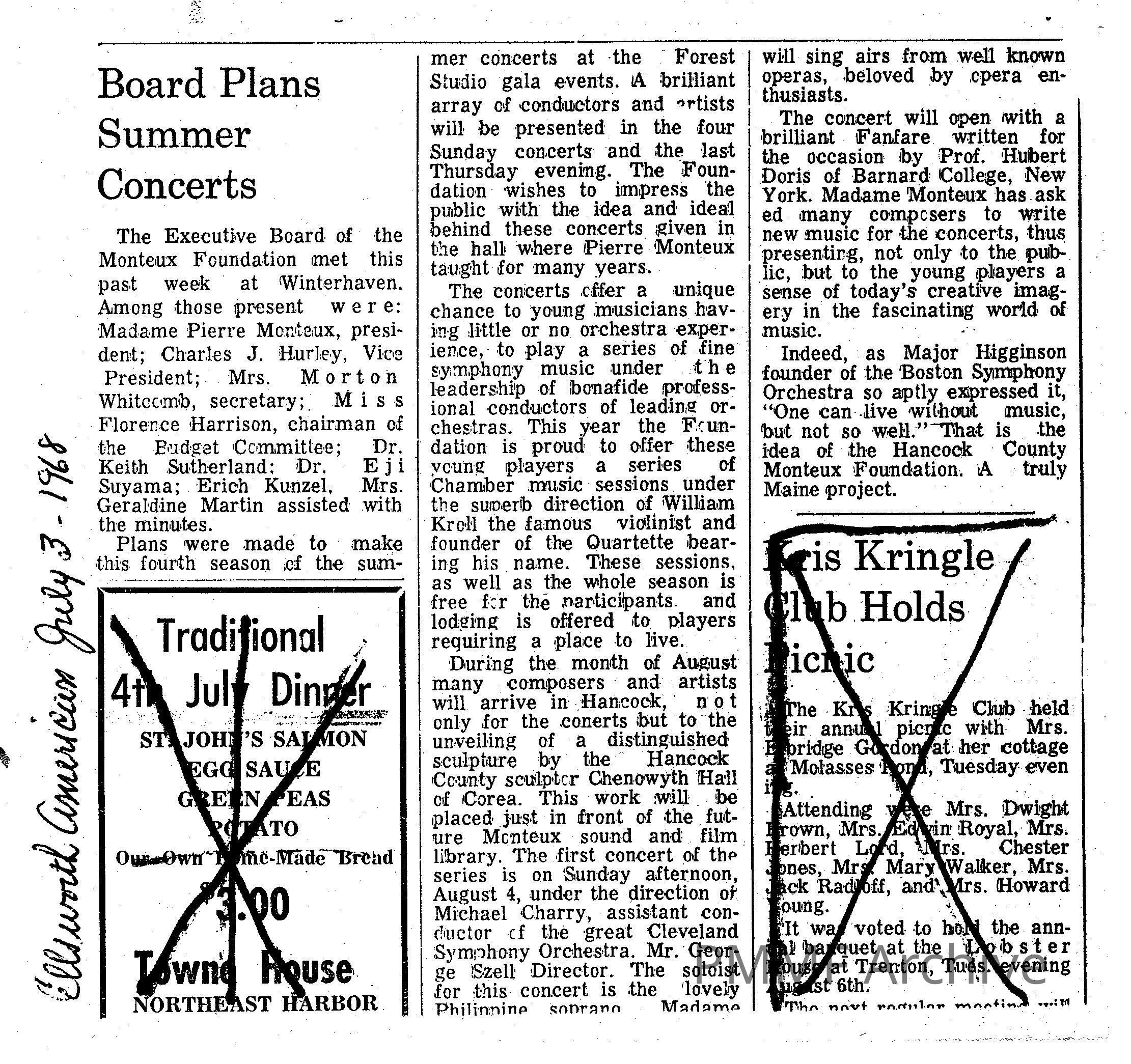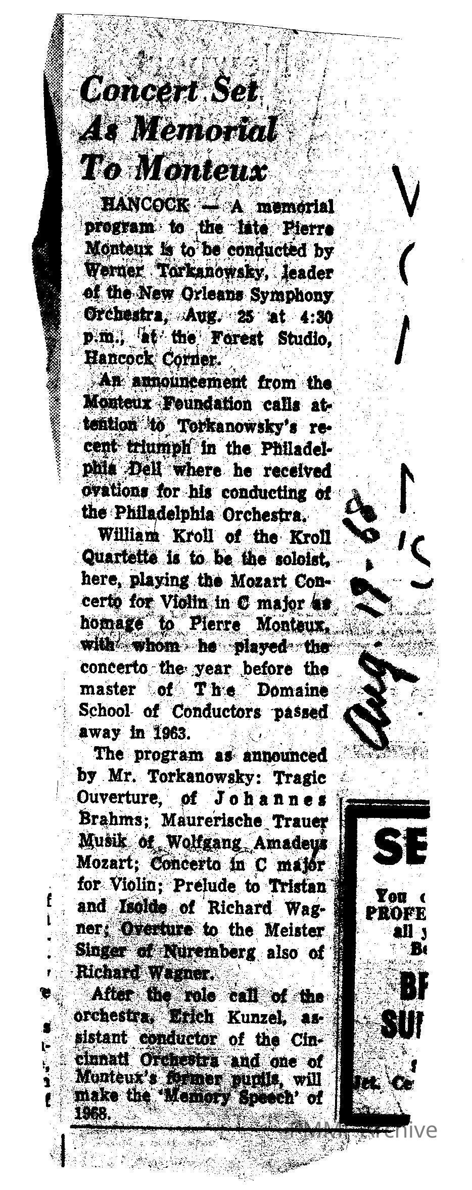 Monteux Domaine Workshop and program announcements and programs 1967–1968Tags