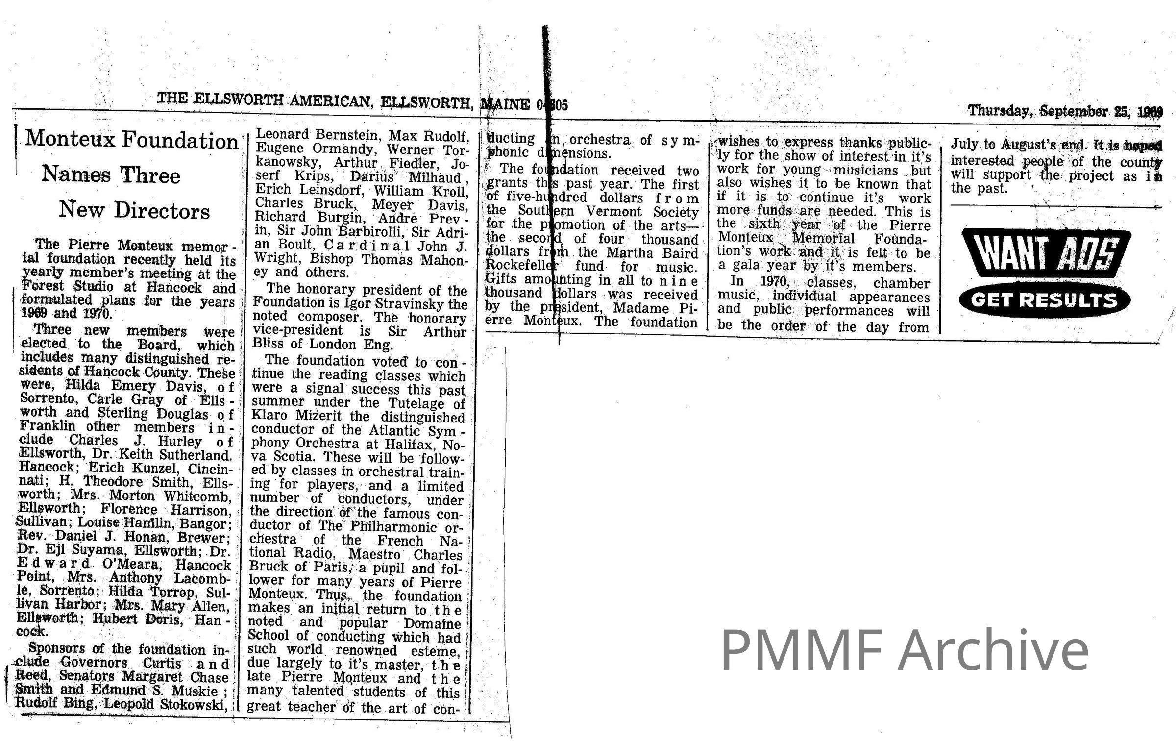 Monteux Foundation article in Ellsworth American September 25, 1969Collection