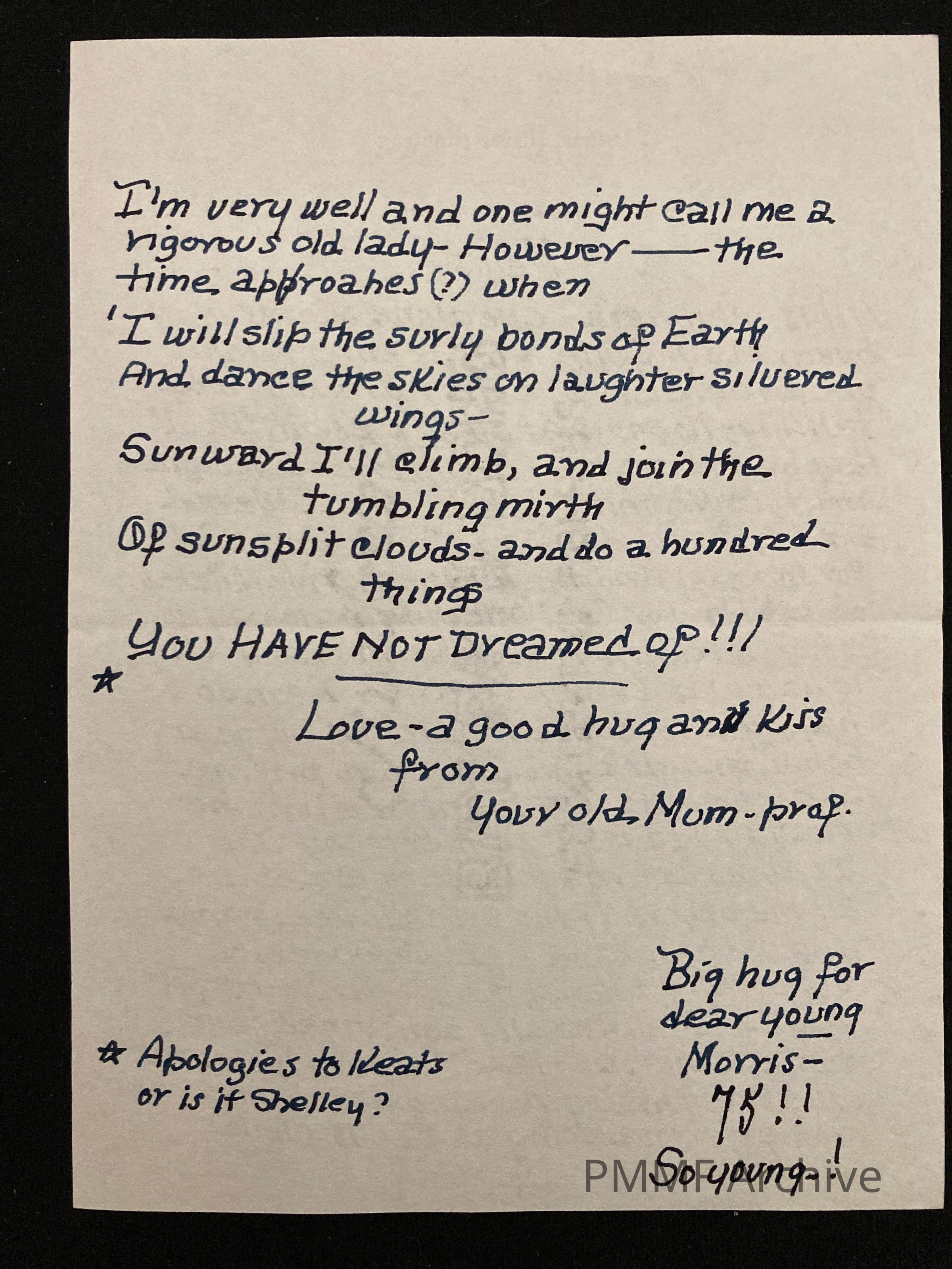 Letter from Doris to Ginia [Moris Wexler's 75th birthday?]