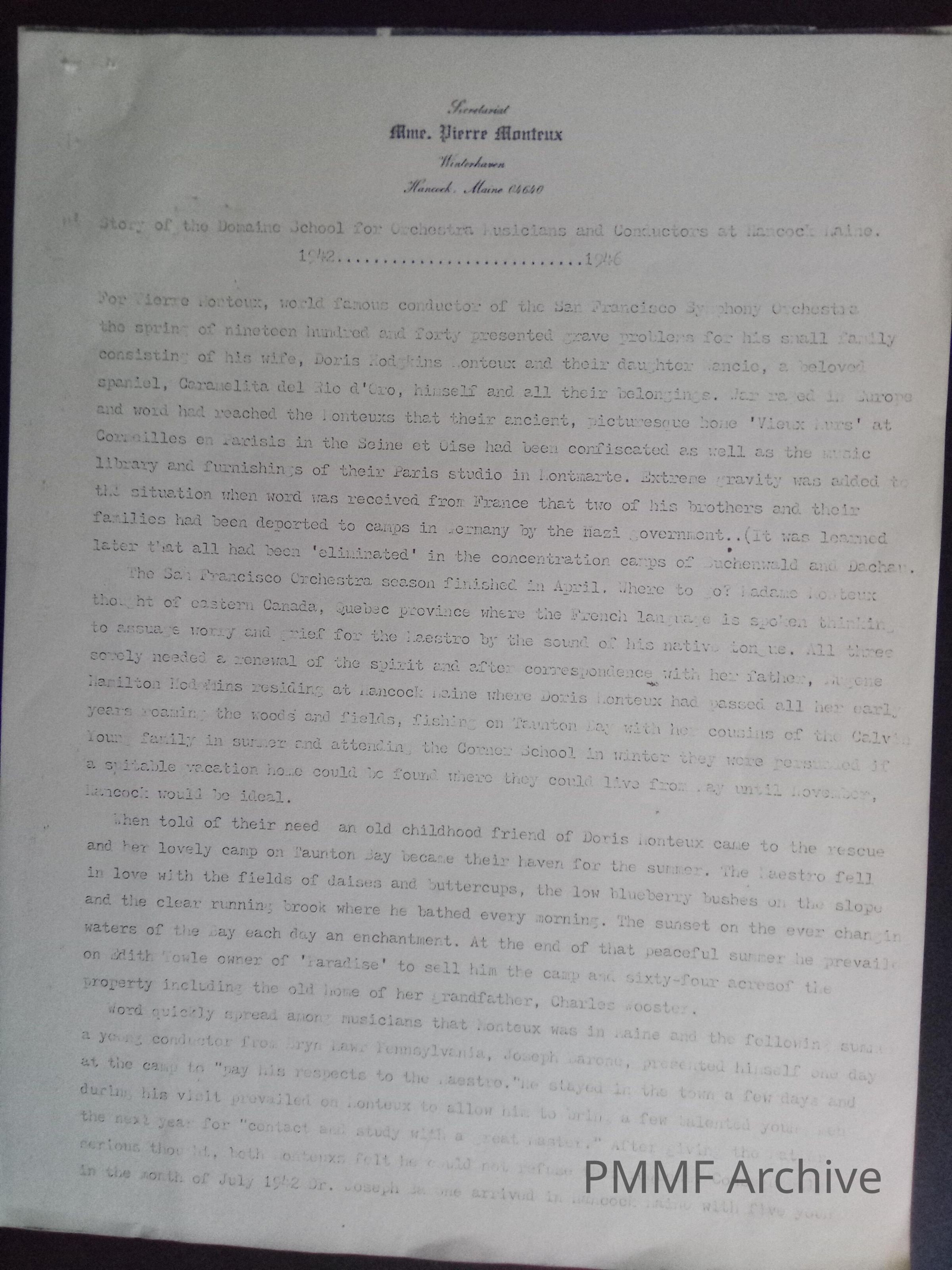 Doris Monteux "Story of the Domain School" Beginning 1942–46 [notes]