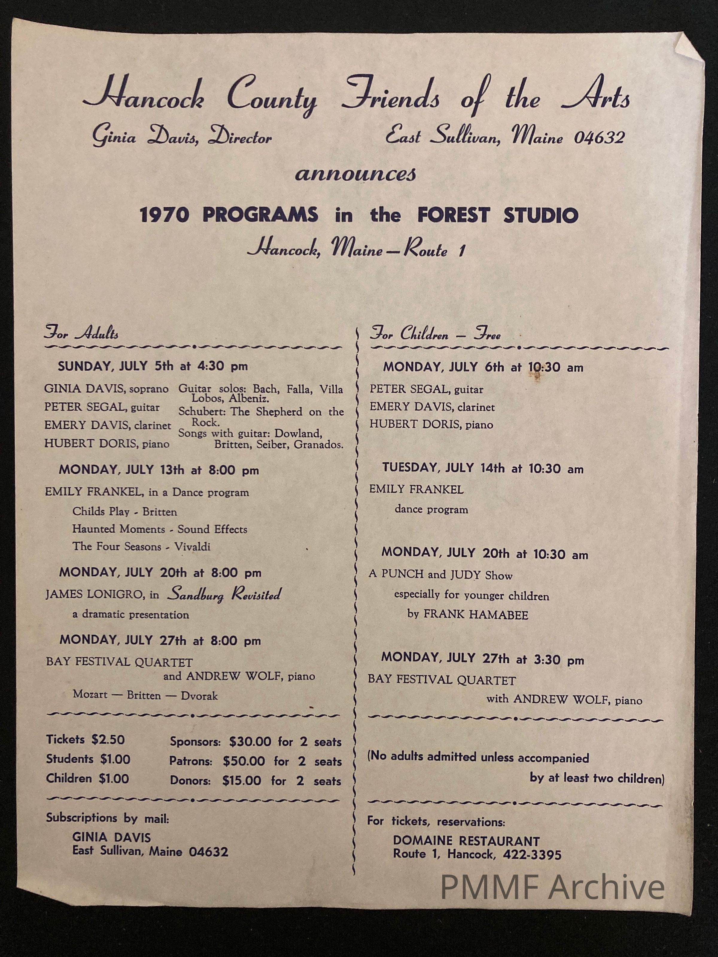 Hancock County Friends of the Arts 1970 Programs in the Forest Studio, HancockDescription