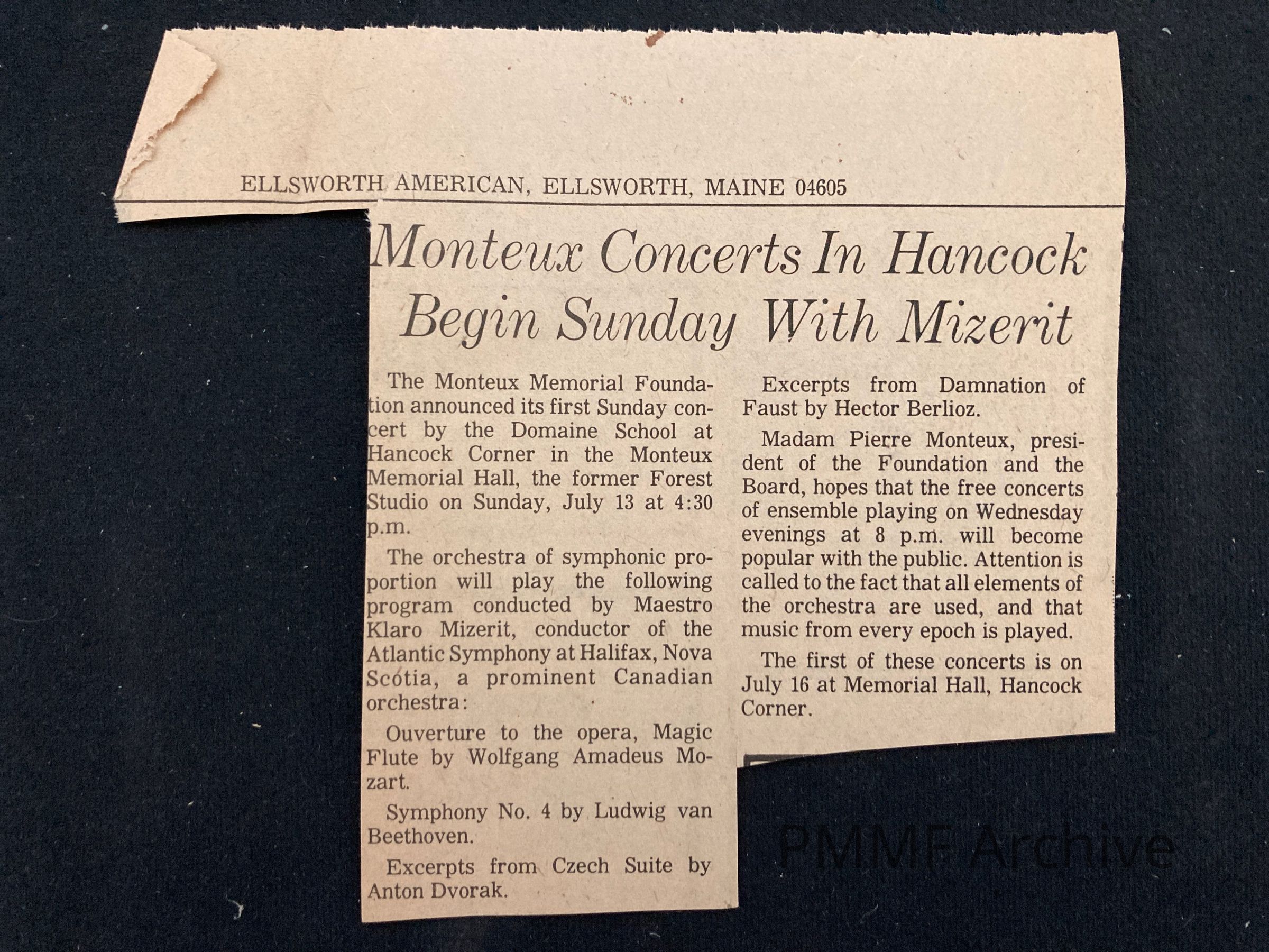Notice of concerts and free Wednesday ensemble concerts, Ellsworth American (no date)