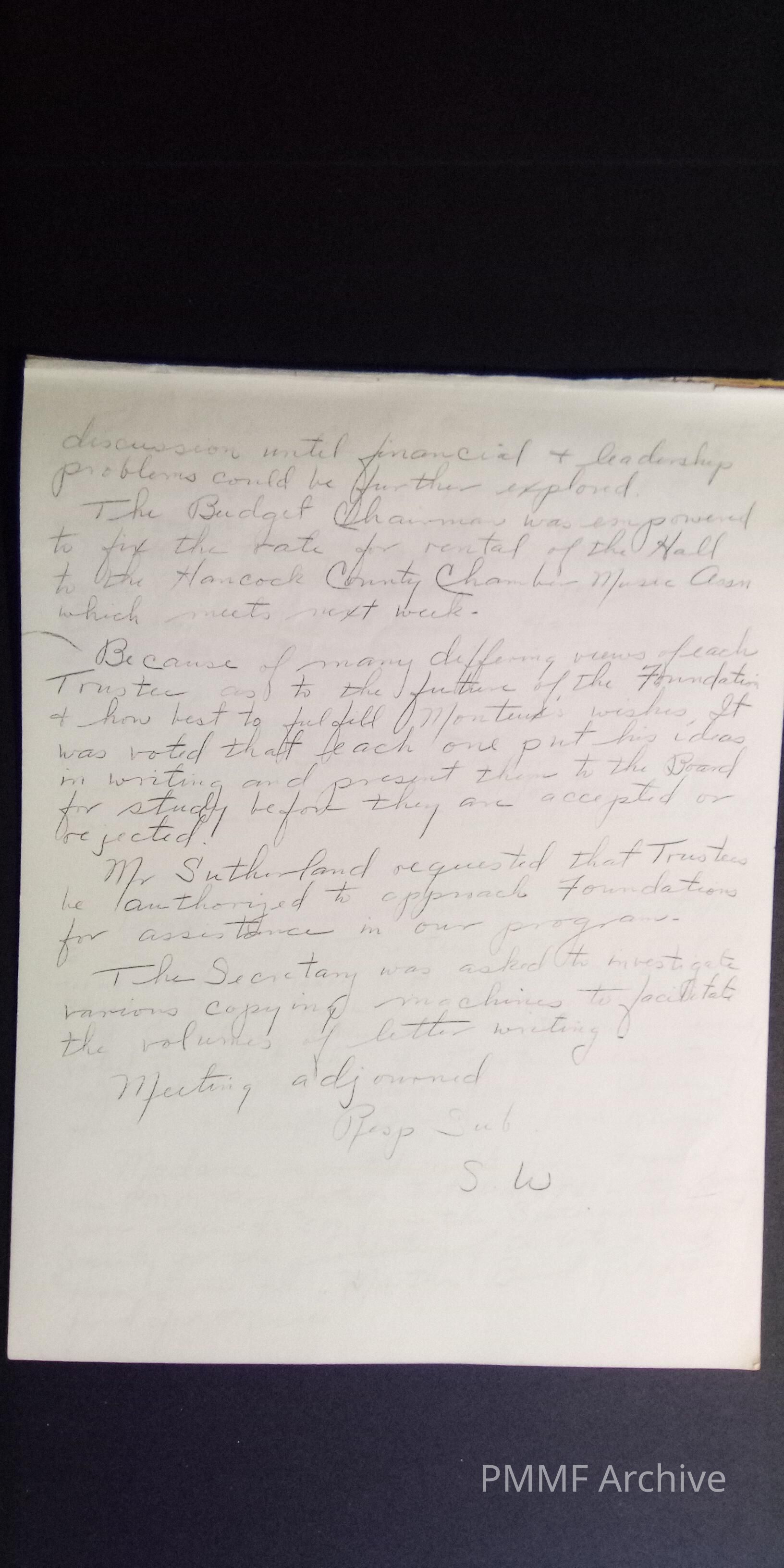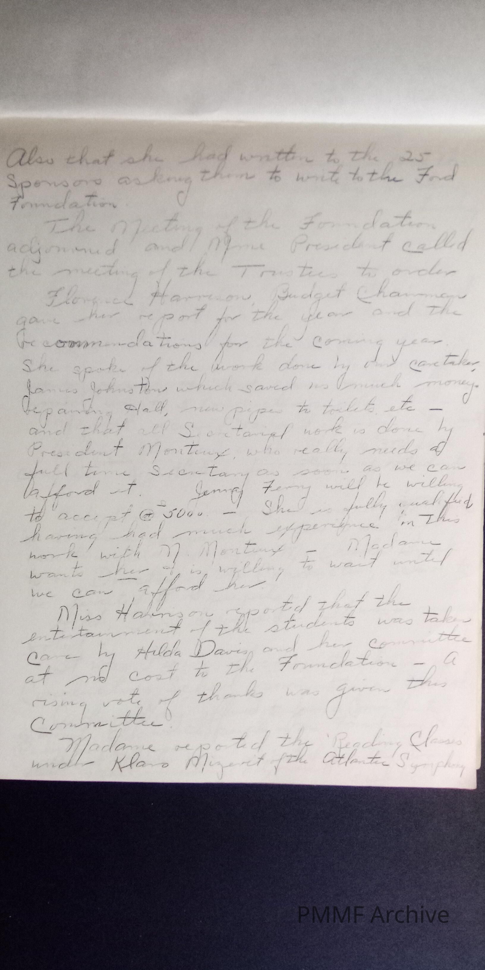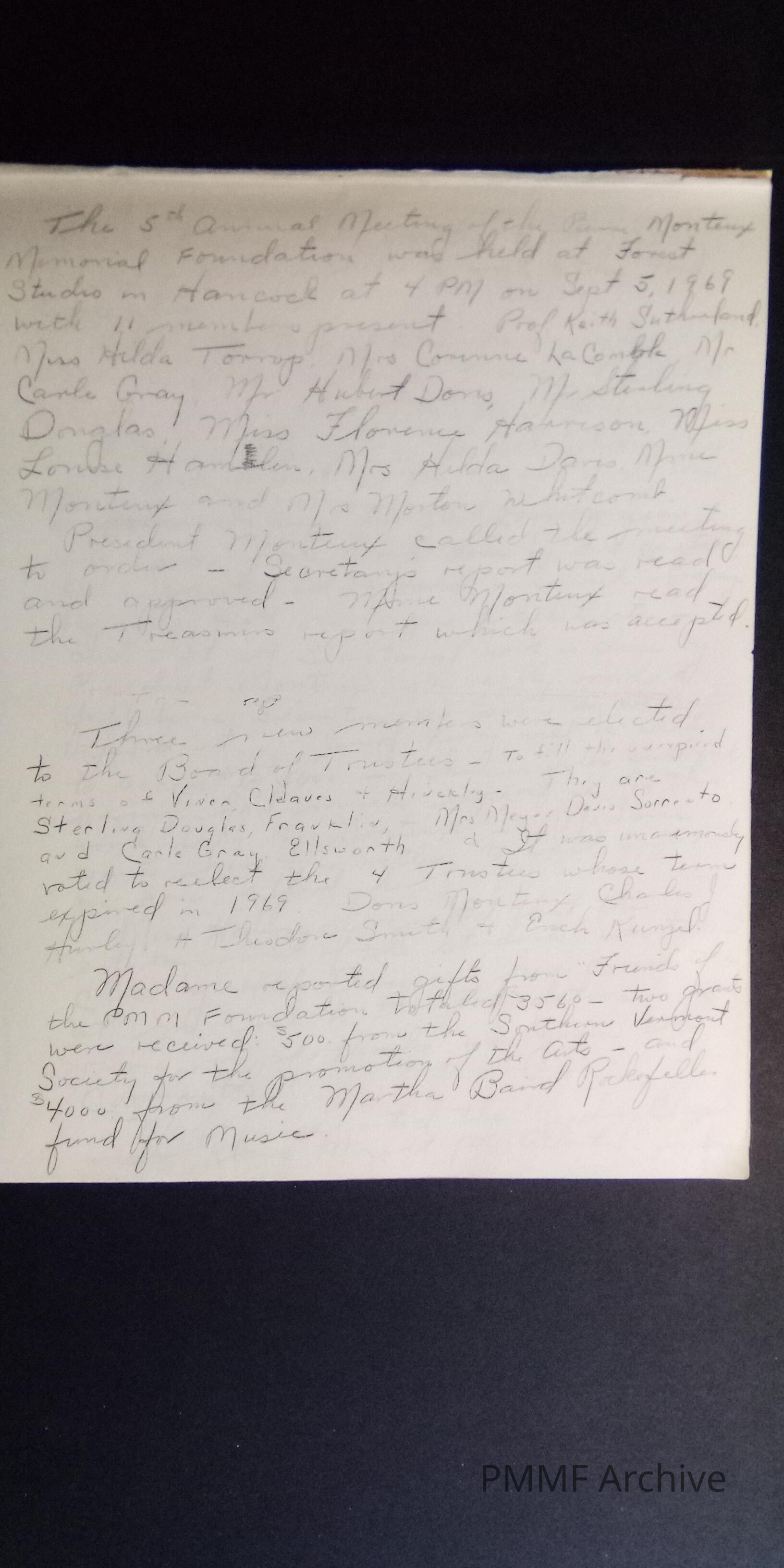 Early Pierre Monteu Memorial Foundation (PMMF) minutes