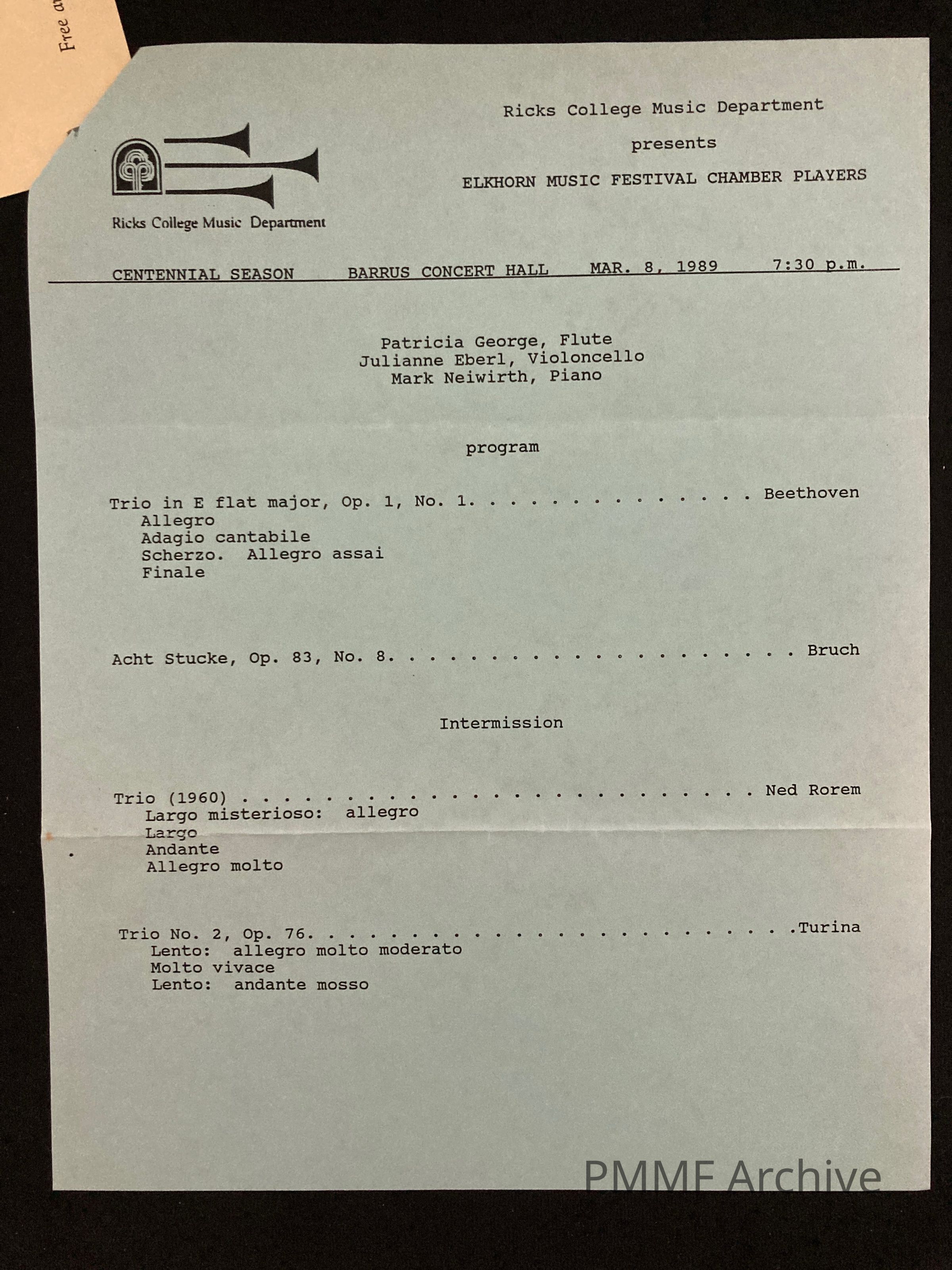 Elkhorn Chamber Players program (Idaho) 1989Description