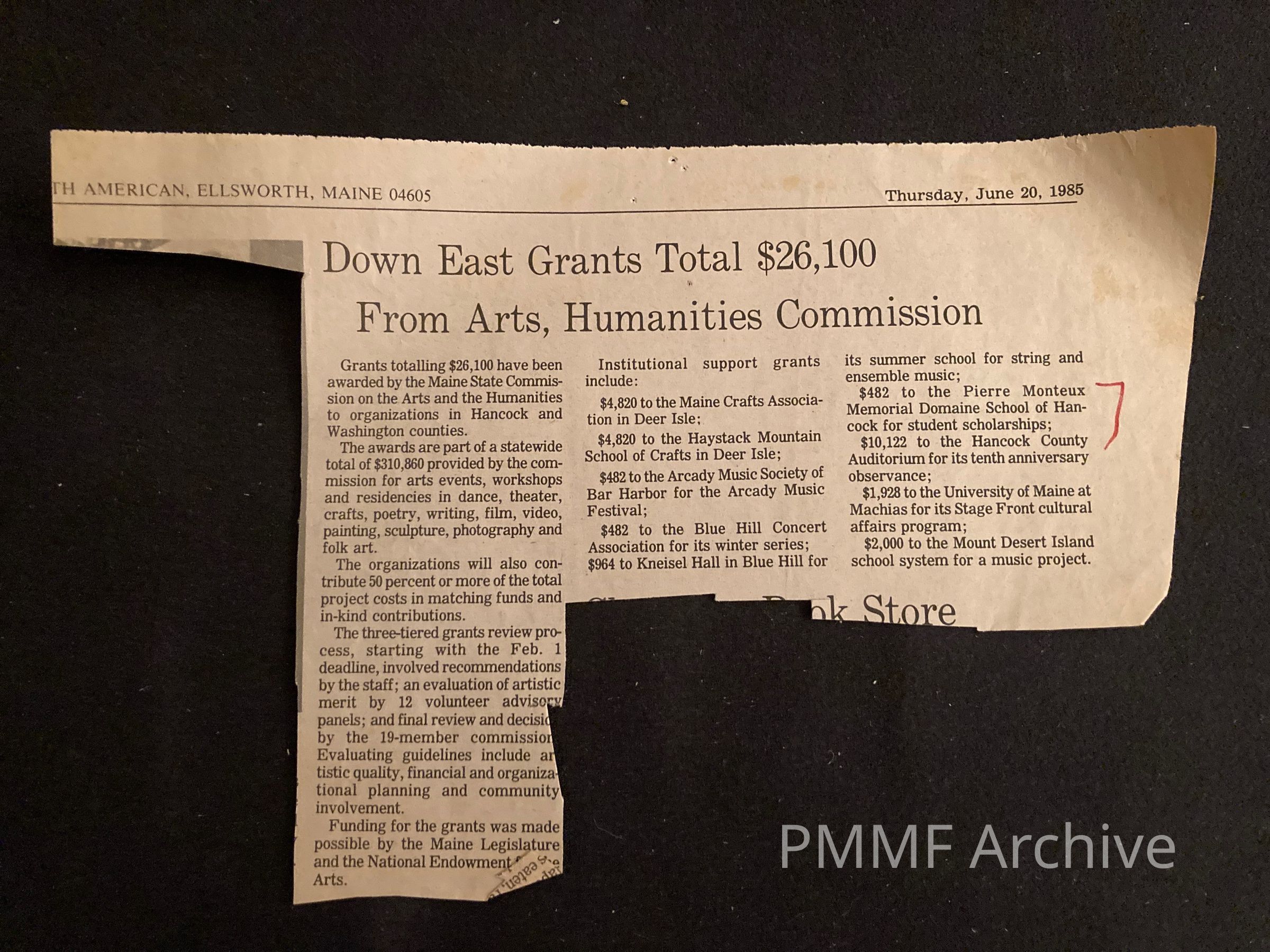 Ellsworth American Announces Grant from Maine Arts and Humanities Commission, 1985