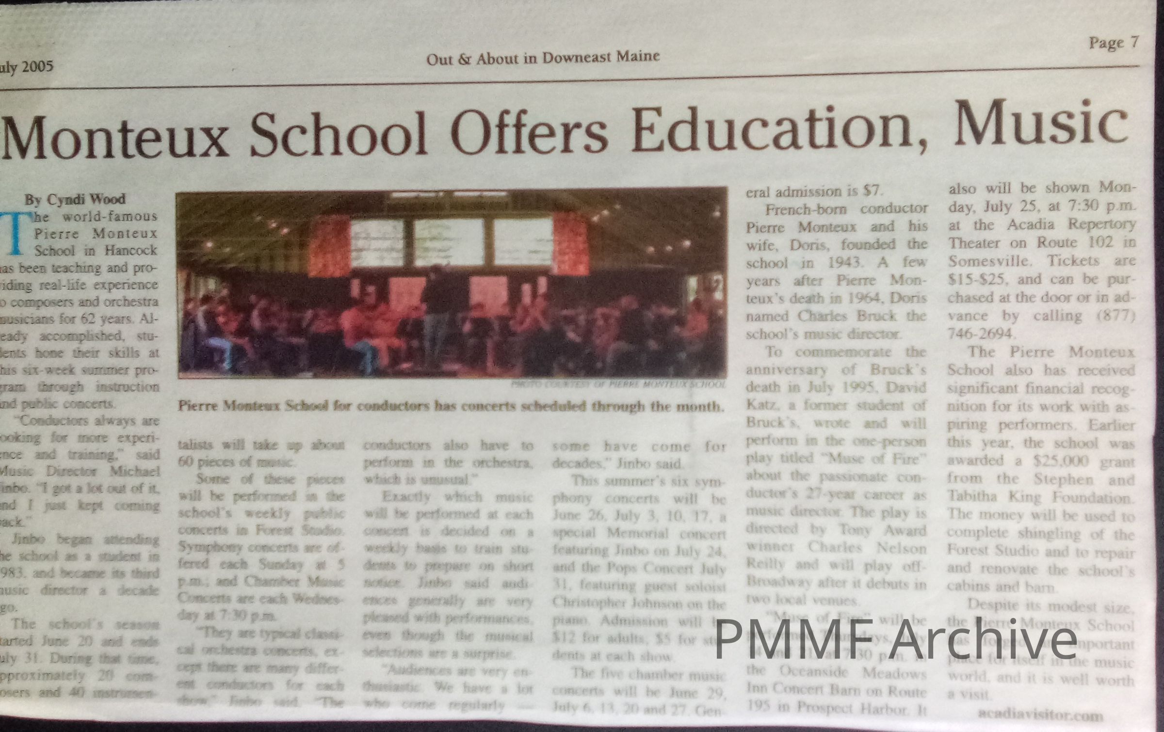 Ellsworth American "Out & About" supplement article about Monteux School (2005)