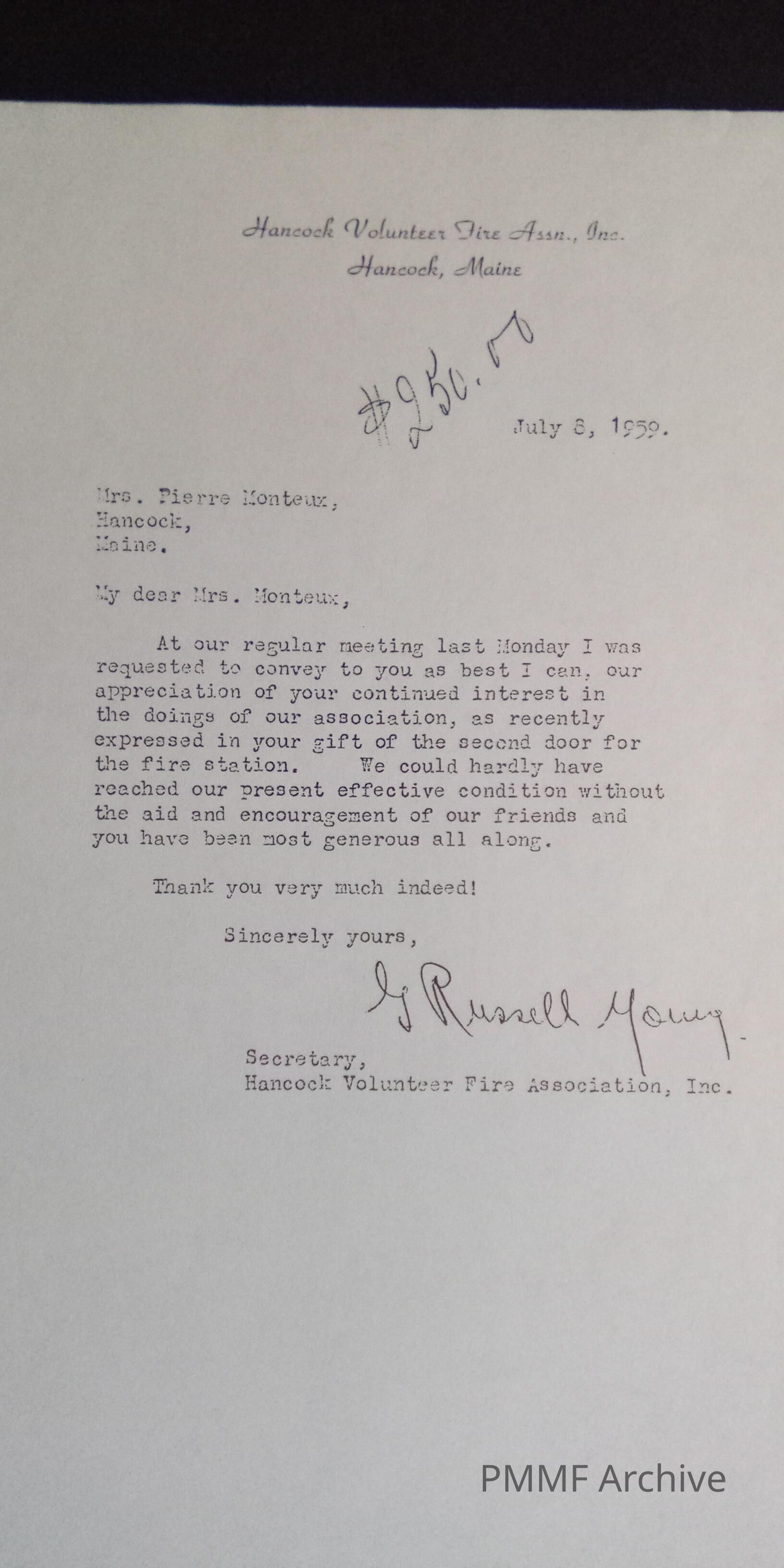 Fire department donation (1959)