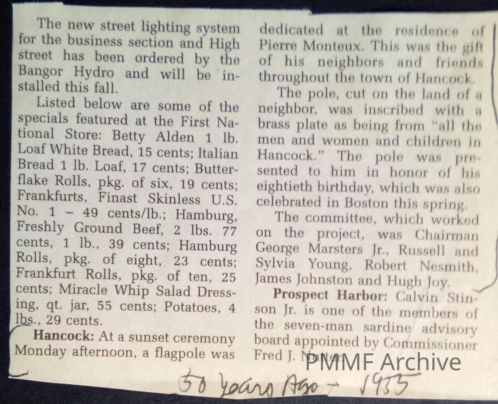 Flagpole erected in honor of Monteux's 80th birthday in Hancock