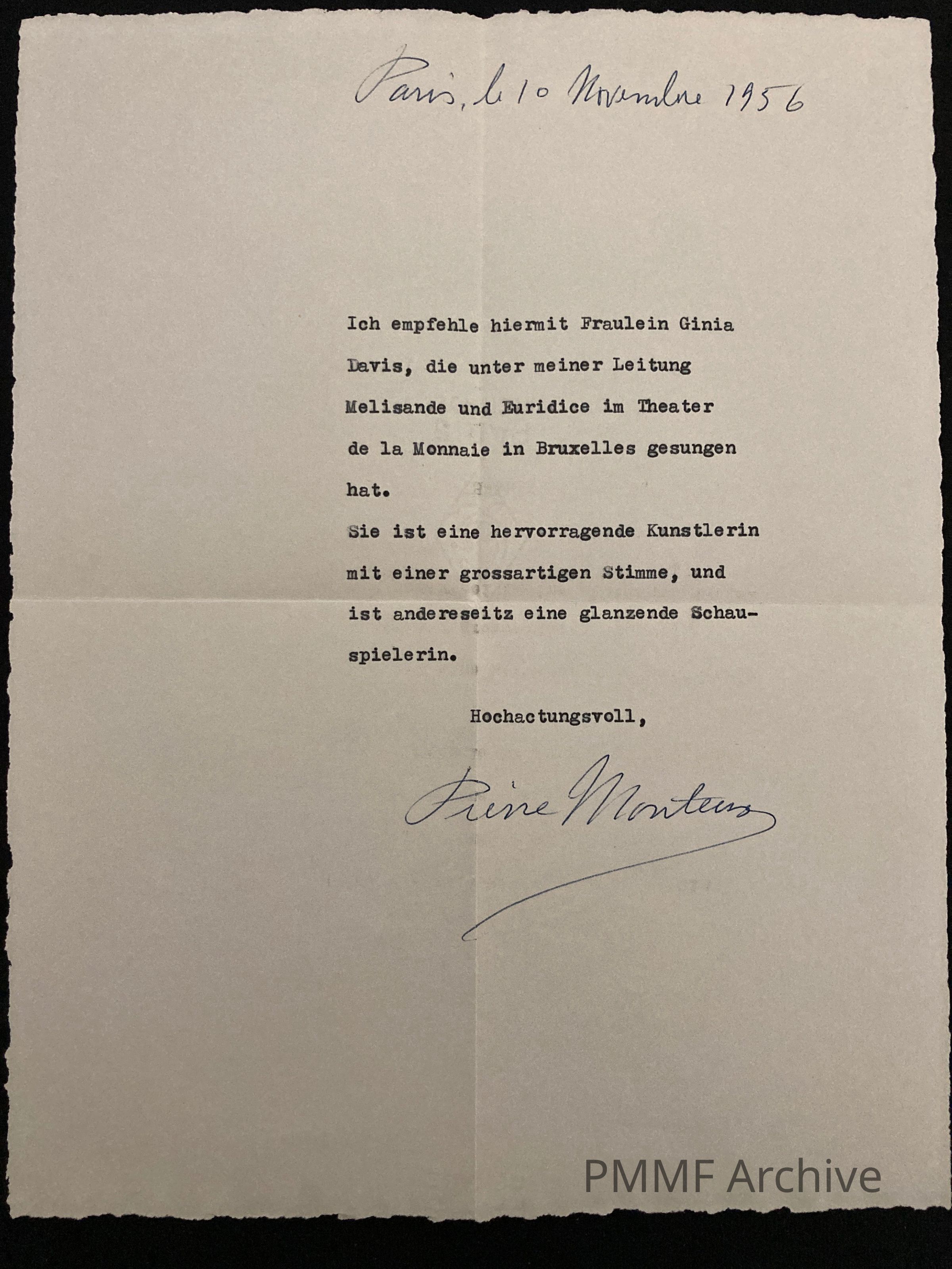 Recommendation letter by Pierre Monteux written in German