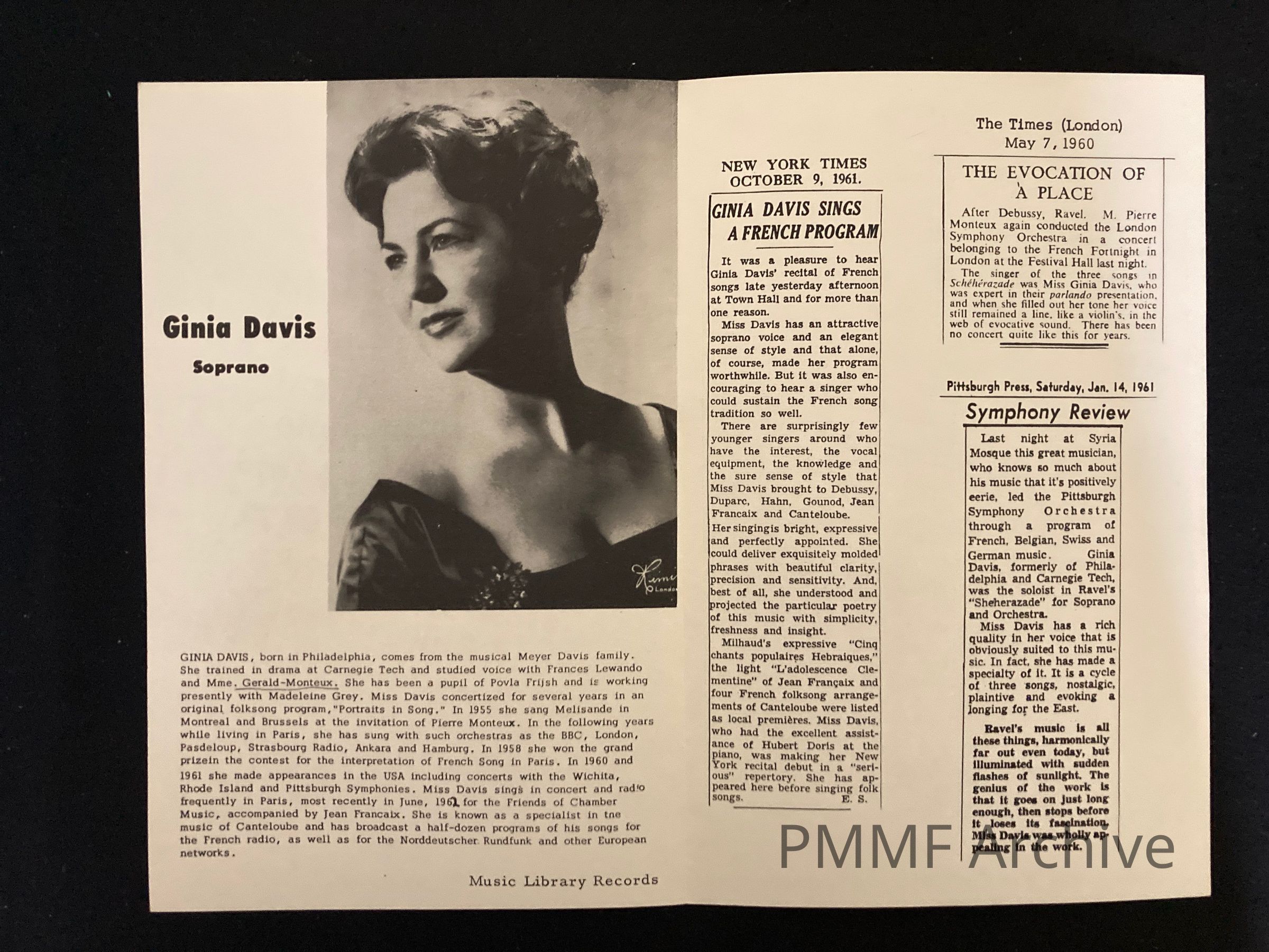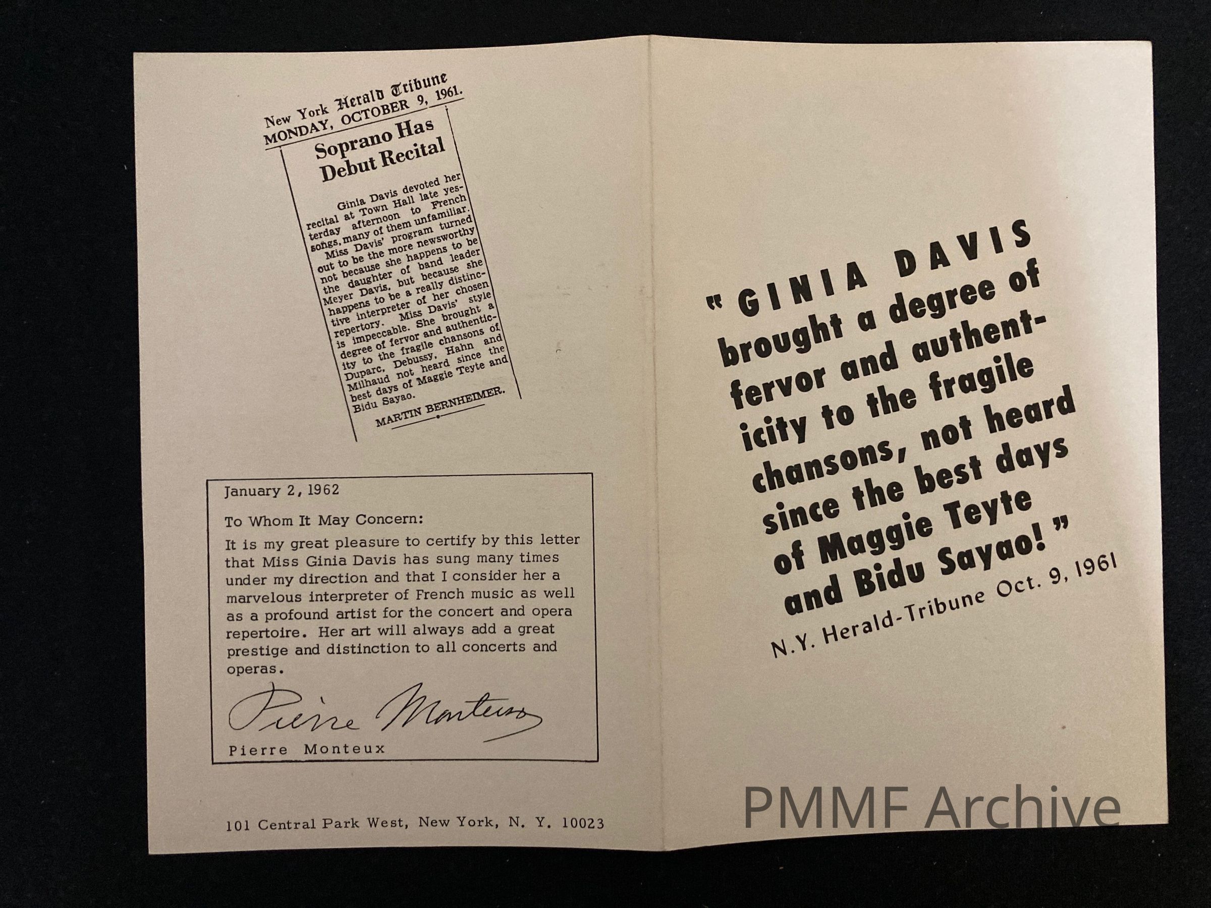 Ginia Davis Reviews & Letter from Pierre Monteux